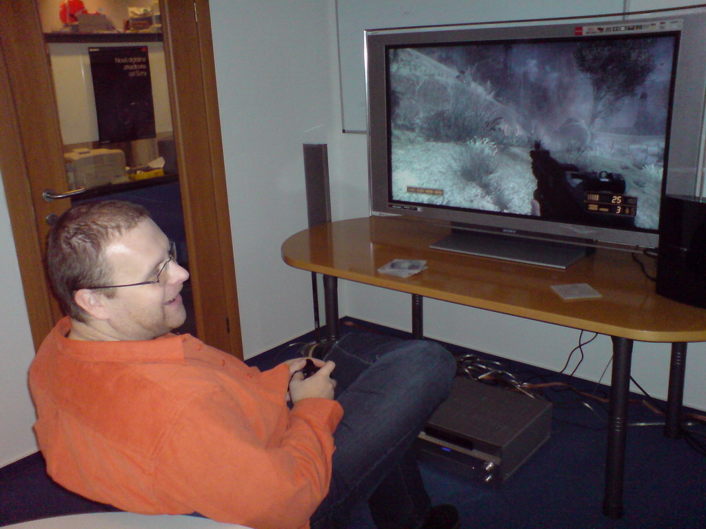 Na miesto určenia som dorazil ako prvý (sorry chalani) a ako prvé mi do oka udrela 52“ Bravia za štvrť melca. Na upozornenie, že vedľa je ten zázrak PS3, som reagoval mávnutím rukou a nechal sa unášať explóziami na obrazovke. Pri uhlopriečke 132 cm a ohlušujúcom zvuku veľmi rýchlo zabudnete, na čo ste vlastne prišli. Skôr než tu začnem pitvať dojmy z hrania preview verzií tých najočakávanejších peciek, niekoľko demystifikácií určených pre všetkých tých, ktorí „zaručene“ vedia, aký je PS3 nepodarok. Konzola je tichá, neskutočne tichá, je ťažká, písmo v menu sa upravuje podľa rozlíšenia, takže je čitateľné, áno povrch je ako zrkadlo, ale nie je takým magnetom na odtlačky ako PSP a nie, toasty si na nej neurobíte. Vzduchové prieduchy odvádzajú svoju prácu na jednotku.