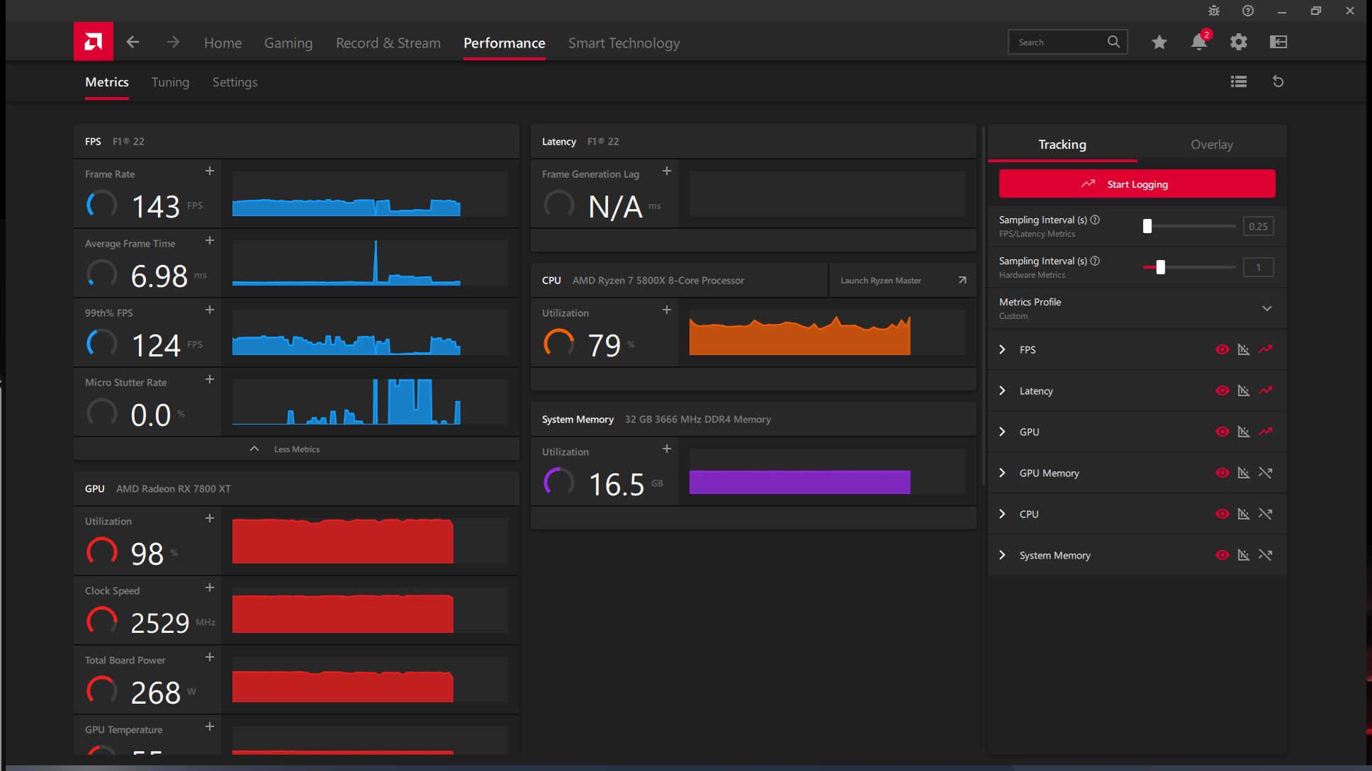 Čo treba AMD pochváliť, je softvér Adrenalin pre správu driverov, nastavení hier, monitoring výkonu, až po rôzne možnosti streamovania a nastavovania obrazoviek. Jednoducho všetko prehľadne v rámci jednej modernej aplikácie. Pri hrách si viete nastaviť konkrétne výkonnostné profily, zapnúť technológie, ako AFMF, Anti-lag, Radeon chill pre obmedzenie výkonu pri dosiahnutí požadovaných fps (čím klesá spotreba aj hlučnosť) atď. Samozrejme, nechýbajú štatistiky a prehľady výkonu.