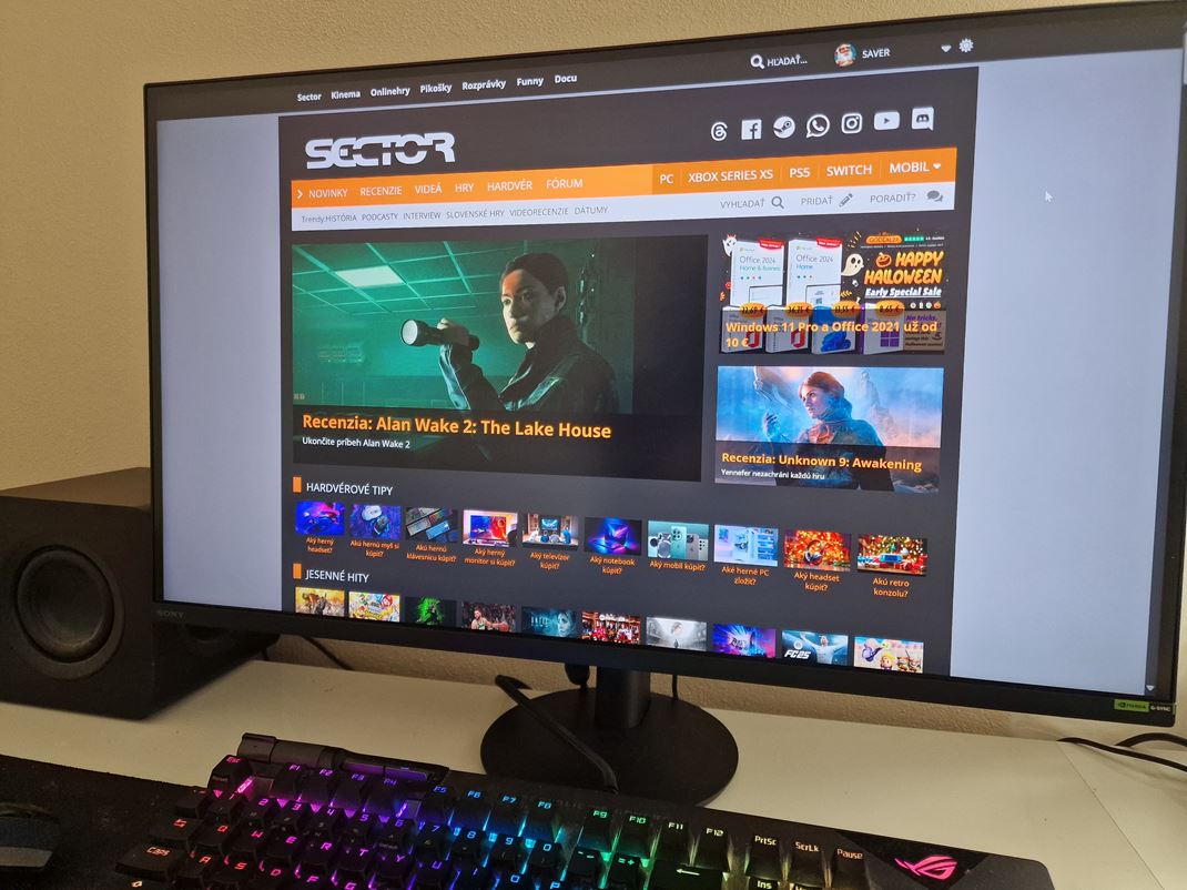 Obrazovka je tu spomínaná LCD s Mini LED podsvietením a konkrétne je 27", ale s tým, že okolo nej sú približne polcentimetrové okraje. Ak by ste chceli viac týchto monitorov prepájať vedľa seba, rátajte s tým. Nie je to problém, len je trochu škoda, že napriek väčším okrajom a aj Mini LED podsvieteniu nie sú zaistené plné intenzity jasu v horných rohoch obrazu. Znamená to, že hlavne vidíte malé stmavnutie obrazu. Podobnú vec mala aj predchádzajúca verzia monitoru. Pri práci vo Windows si to môžete všimnúť. Rovnako vo Windowse vidíte jednotlivé stmievanie zón, kedy sa mierne zmenia farby ikoniek, osobne mám preto radšej lokálne stmievanie v systéme vypnuté. Iné je to pri hrách a filmoch, kde aj 96 zón pracuje s lokálnym stmievaním veľmi dobre a zaisťuje veľmi pekné kontrasty a aj vysoký jas.
