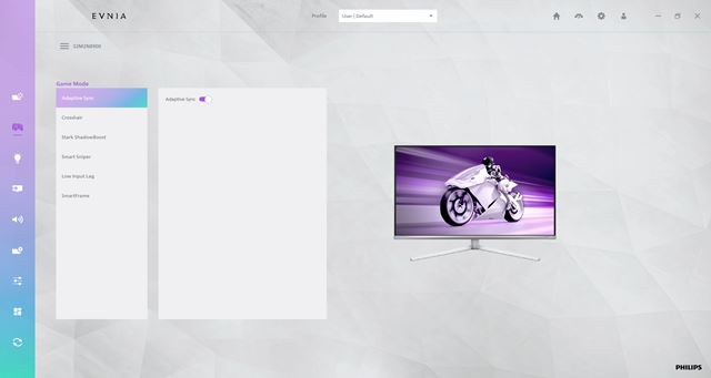 Základné možnosti zahŕňajú jas, kontrast, ostrosť, výber farebného spektra a teploty farieb, a môžete si nastaviť aj gammu. K tomu je k dispozícii desať prednastavených režimov, ako FPS, movie, dve herné vlastné nastavenia, racing, RTS, ekonomický režim, low blue režim (ktorý je však príliš žltý), easy read režim v čiernobielom, a Illustrator režim zameraný na farby.