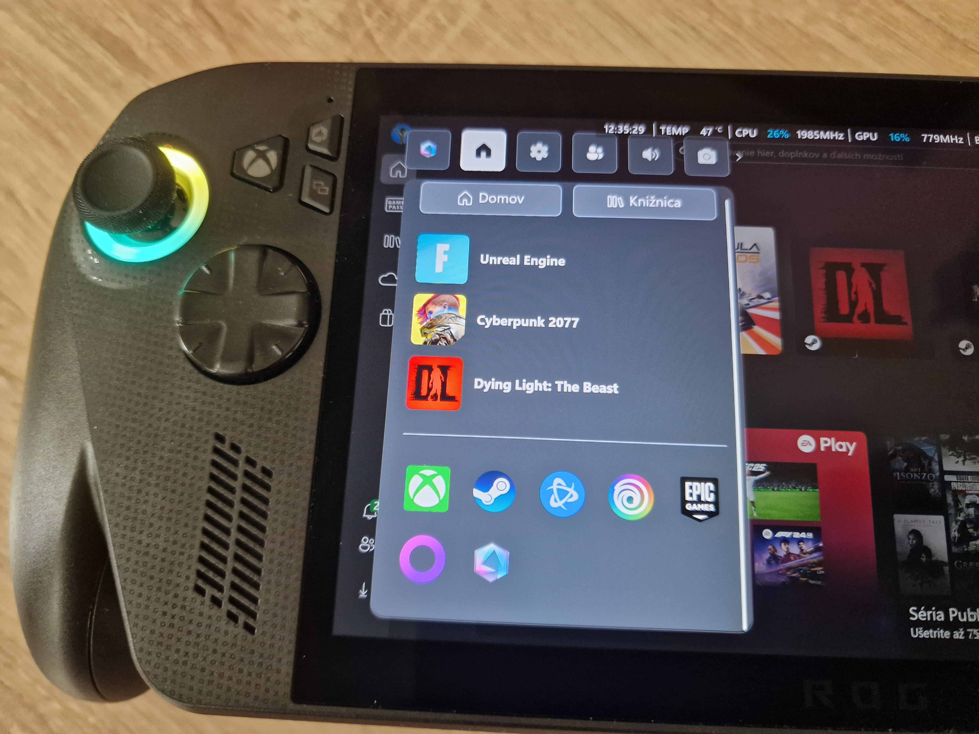 Celé to je už teraz na prvý pokus dobre spojené, sú tam ešte rôzne menšie nedotiahnutia a veci, ktoré sa dajú spraviť elegantnejšie (napríklad obrázky hier na zoznamoch už mohli dotiahnuť lepšie), ale stále dobre. Je to možno najlepšie spojenie PC handheldu doteraz. Máte tu jednoduché menu a zároveň plnú podporu všetkých stores na PC, plus plne funkčné ochrany a funkčný multiplayer.