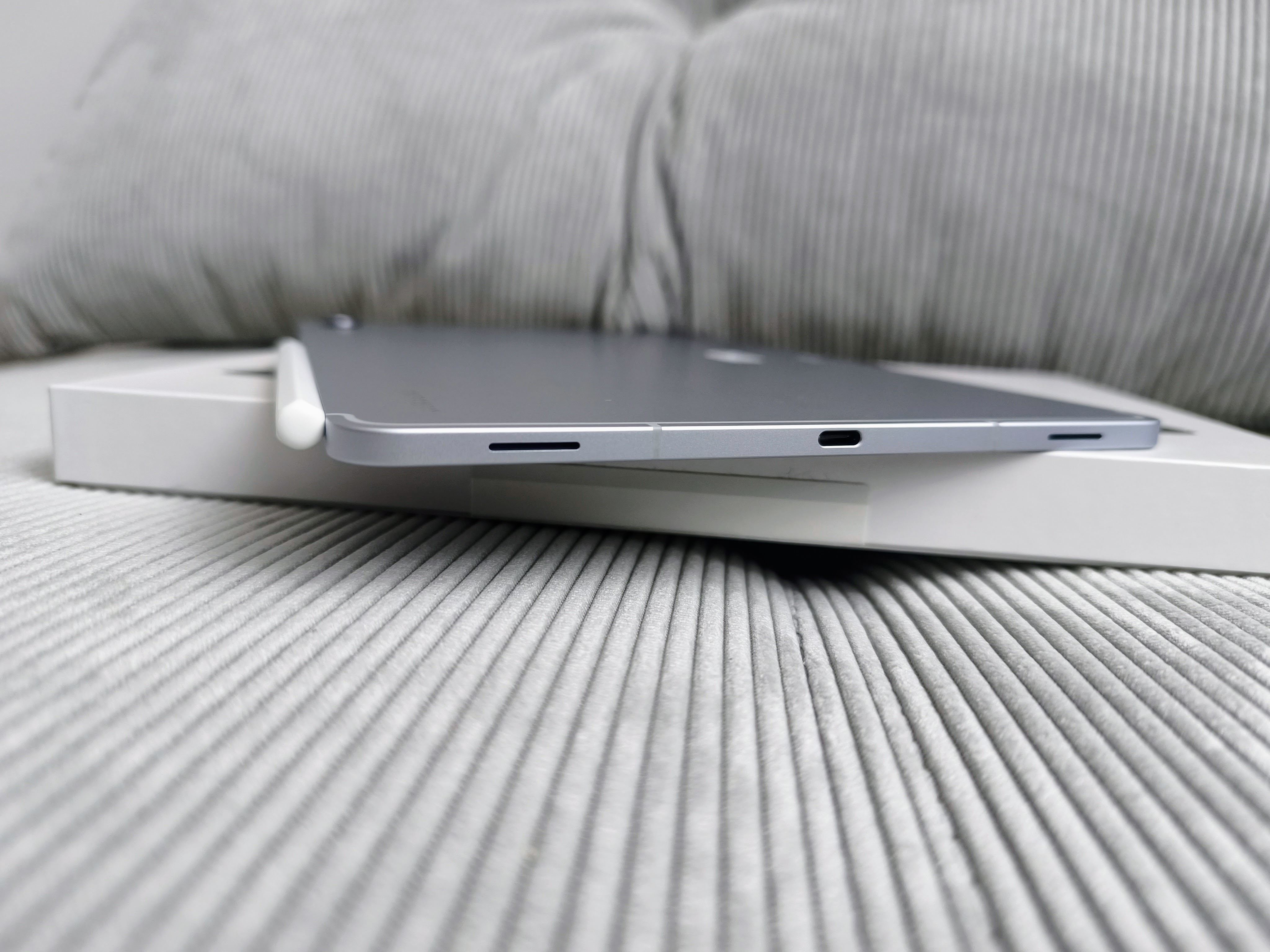 Hneď po rozbalení príjemne prekvapí celková hrúbka, alebo skôr tenkosť tabletu. Tá dosahuje hodnotu len 5,5 mm, vďaka čomu je tablet tenší než samotné dotykové pero. Celokovové vyhotovenie pôsobí v rukách aj napriek tenkosti veľmi solídne, bez akýchkoľvek náznakov flexibility. V kombinácii s nízkou hmotnosťou, len 469g a pomerne tenkým rámčekom okolo displeja, pôjde o ideálneho spoločníka na časté prenášanie. Oproti predchodcom sa zmenilo aj umiestnenie dotykového pera, ktoré po novom nemusí byť prichytené len na zadnej strane. Magnetická plocha sa presunula na oveľa tradičnejšie miesto, a to pod ovládacie tlačidlá na pravej strane zariadenia (prípadne viete pero prichytiť v rovnakom mieste aj na ľavej strane). Osobne sa mi táto zmena páči, nakoľko to zjednodušuje a zlepšuje používanie tabletu s ochranným obalom, vďaka čomu si ho viete položiť pri kreslení na stôl celou jeho plochou bez prípadného nakláňania.