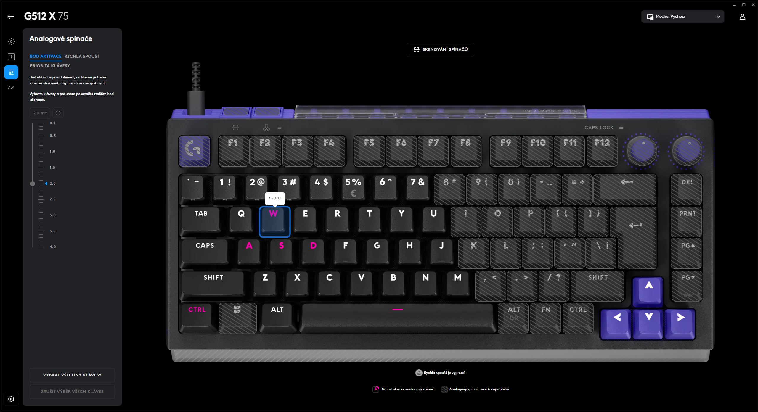 Je teda na vašich preferenciách, kde sa rozhodnete využiť rýchle a presné switche, no predpokladáme, že siahnete rovnako ako my po okamžitej výmene pre tlačidlá W, A, S, D a prípadne shift, ctrl a medzerník. To sú základné tlačidlá, ktoré využíva každá kompetitívna hra, v ktorej budete vedieť profitovať z prémiových switchov. Výmena pre medzerník sa oplatí aj z hľadiska vyššieho komfortu pri stlačení. Nemusíte sa ale obávať, že by ste TMR switch umiestnili na zlé miesto, oblasť je na klávesnici vyznačená fialovými pruhmi, takže po odstránení tlačidla budete jednoznačne vidieť, či daná časť podporuje analógovú funkcionalitu.