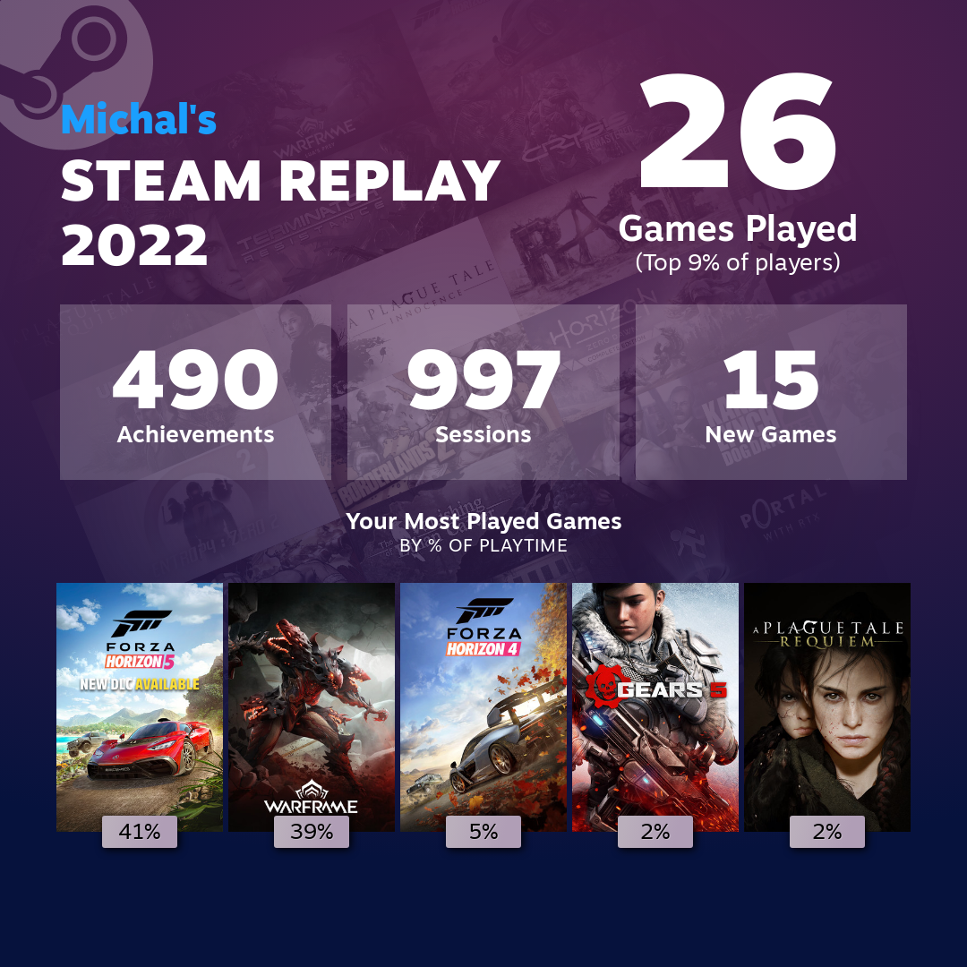 Počet relácii asi navýšilo Geforce now pri niektorých hrách na ktoré nemám výkon alebo miesto na disku (ehm Destiny, a Planet side mi tiež blbne) lebo mi prišlo že som hral oveža menej.