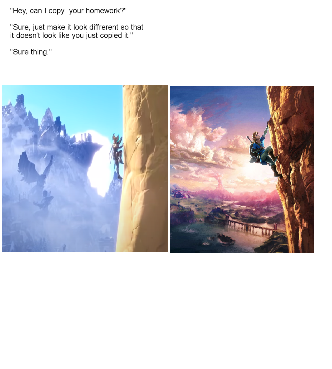 Až na to že ubi nikdy nespraví tak dobrú hru ako BotW. Nevedia tam dať také detaily a nemá to tú atmosféru a hlavne nemáš pocit že hráš niečo nové. Toto je proste AC Odyssey s prvkami Zeldy. Tak ako bol Odyssey a snažili sa aby to bolo ako Witcher