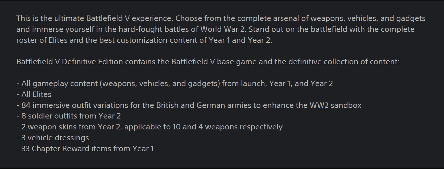 Vydali aj Elite edíciu, ktorá je ale dosť slabá a cenovka je teda riadne na 90€. Keď si porovnám BFV definitive edition a Elite Edition, tak rozdiel je tam obrovský.