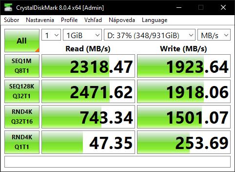 Výpovedná hodnota toho CrystalDiskMark je ale otázna, môj disk je vo všetkých políčkach podstatne pomalší, no pri Q1t1 čítaní rýchlejší. |
