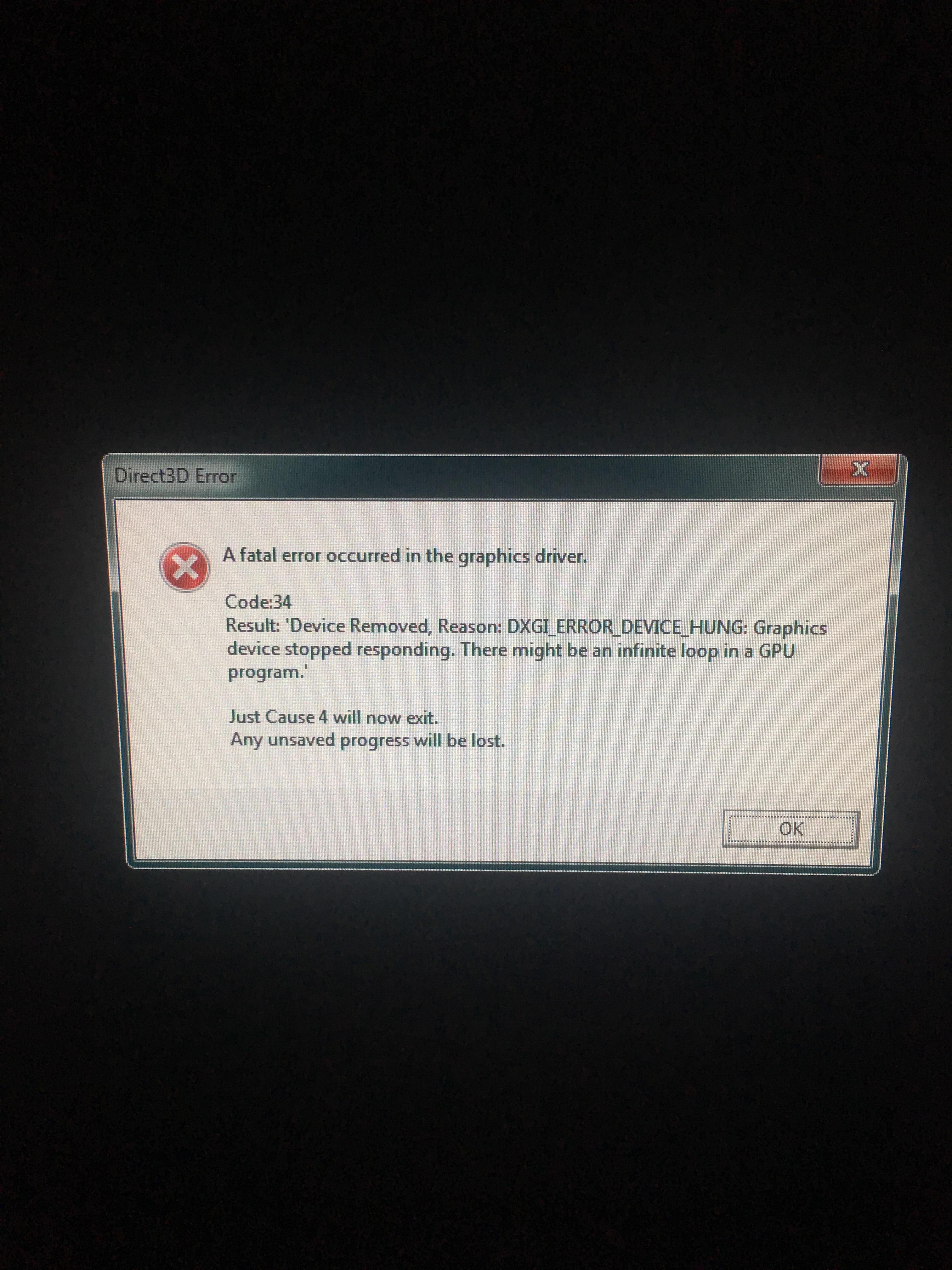 Ahojte, prosím Vás o malú pomoc s hrou Just Cause 4. Počas hrania sa mi vypne a naskočí mi táto tabuľka. Neviete čo mám s tým urobiť? Za pomoc vopred ďakujem.