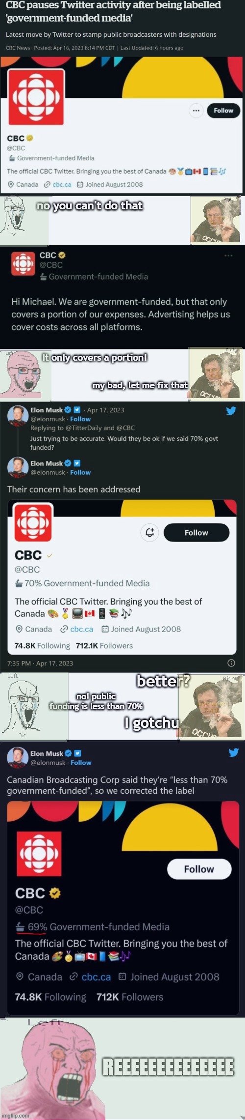 Musk akurat zacal rusit government-funded media popisy, ked mu odchadzaju media a zrusil to aj cisto statnym ako RT :)