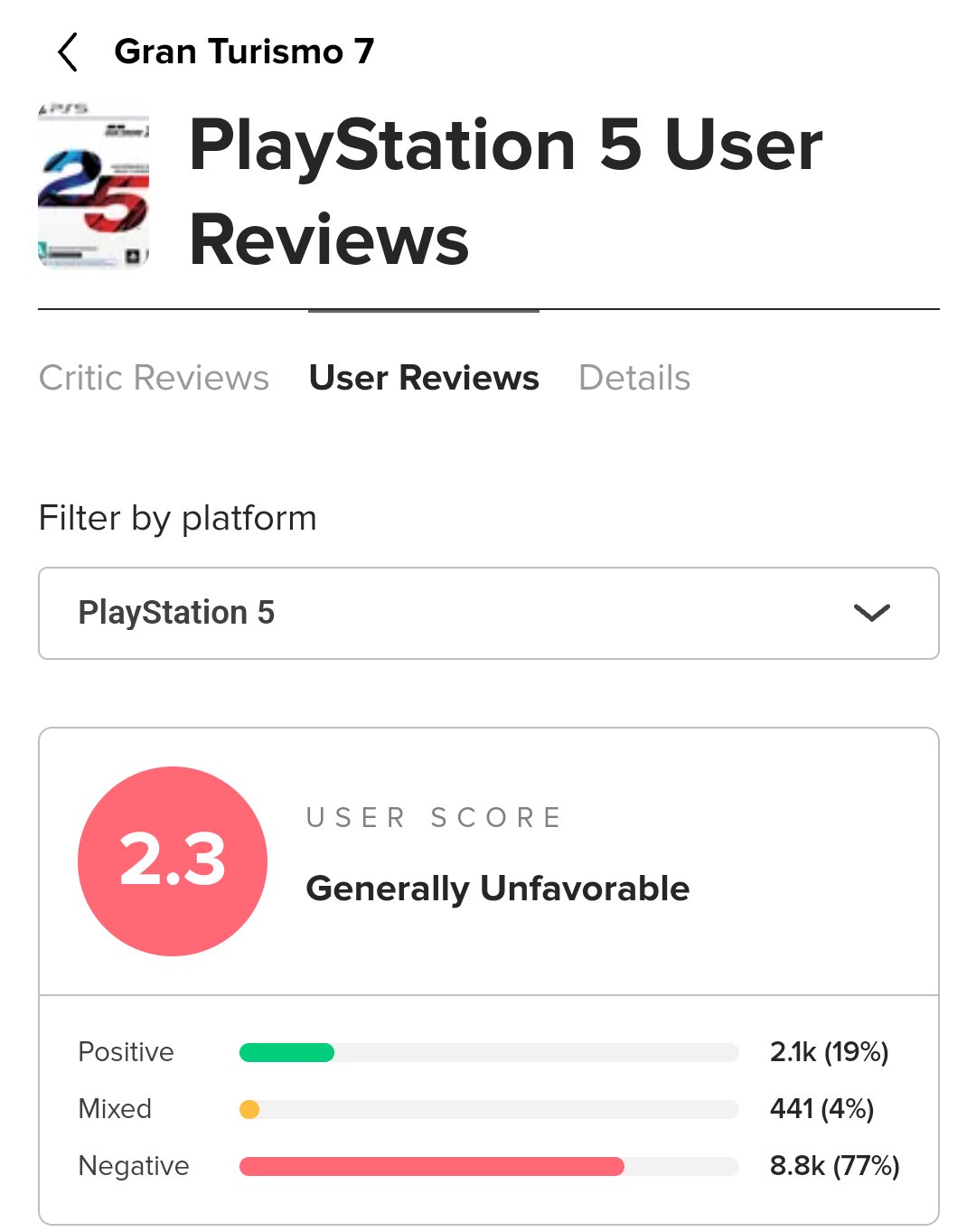 recenzie uz davno nie su objektivne. Vid hodnotenie GT7 vs FM23. FM23 o kategoriu horsia hra ako vizualne tak hratelne, mnozstvo bugov zla optimalizacia a mnozstvo dalsich veci, dokonca to nazvali simulator aj s funkciou vratenia spät o par sekund ci menej postihov. Slaba kariera atd.