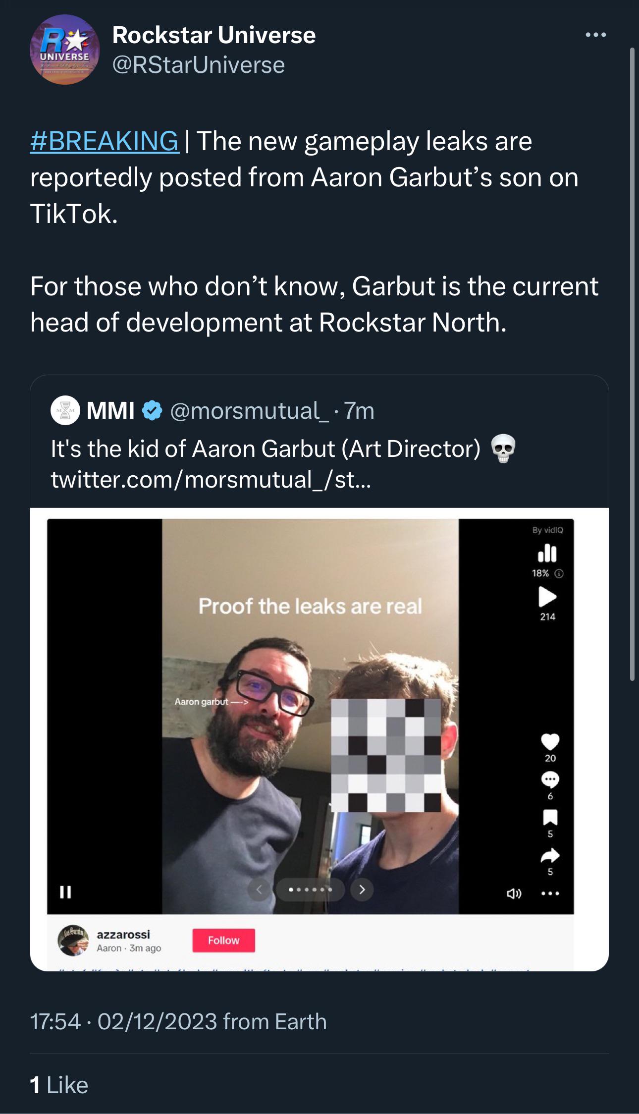 Like the leaker is the son of Aaron Garbut... who is the art director and head of development at Rockstar North.