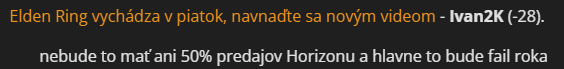 Blahozelam ale za mňa najslabsi souls hra. Zbytocny open world ktory hře nic nedal len to zbytocne natahoval. Celý svět a lokace posobili akoby FS použili asety ze všech svých her. Taky guláš všeho možného už x krát viděného. A opakování bossů a dangeonu je už jenom třešnička. Zlatý sekiro kde sa snažili o posun a změnu ale stále to mělo FS rukopis.