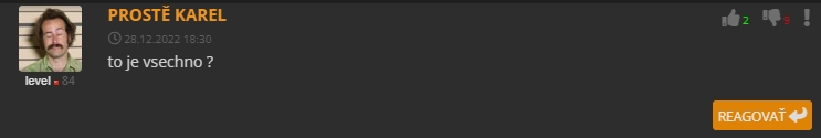 A veru dlho som nekomentoval, sector upadol pre mňa, ani nečítam komentáre, ale nedavno som prečítal pár a tvoj ma fakt dostal |