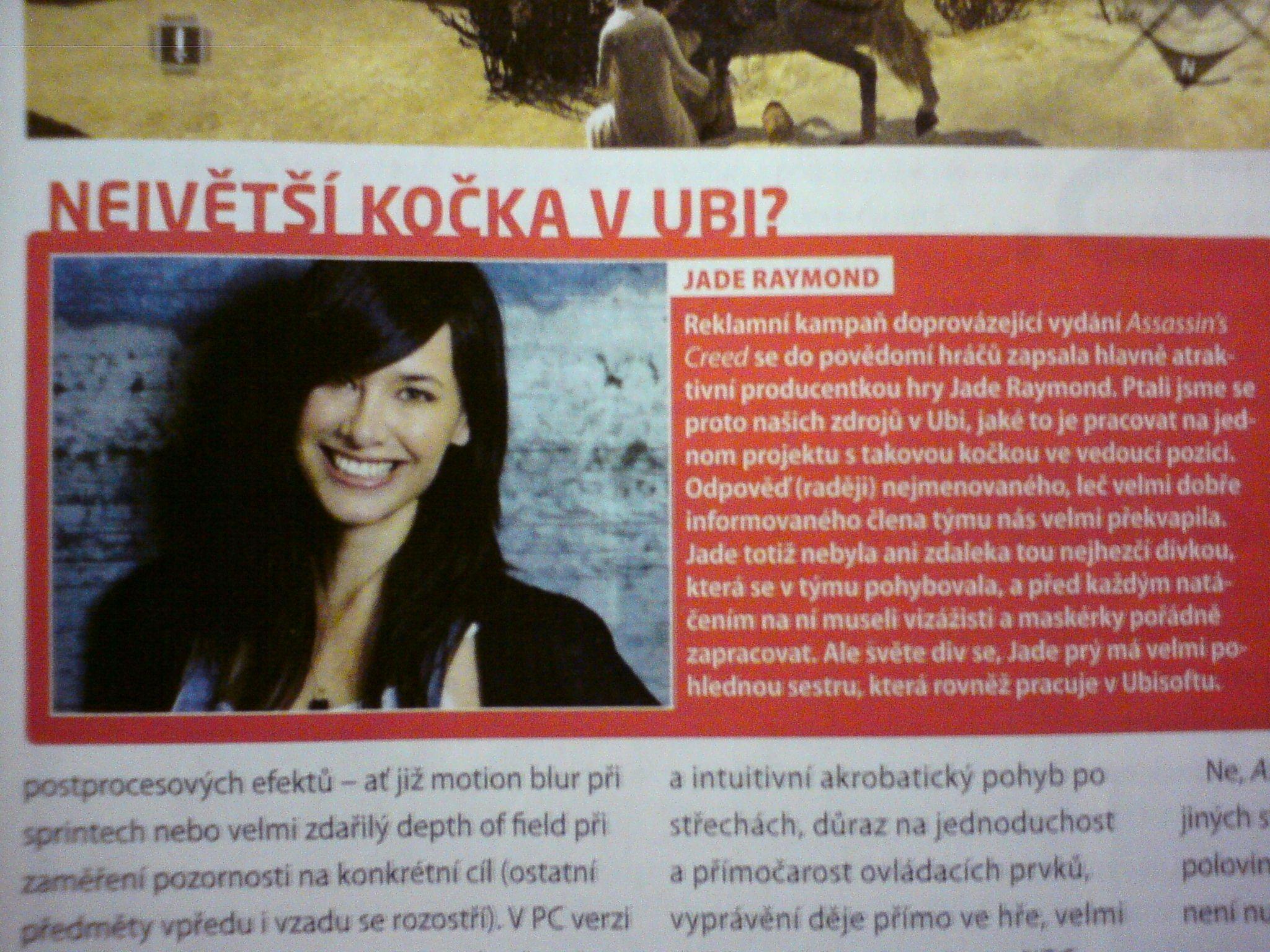 Vidím e jsi odborník na slovo vzatý. Btw shocking twist, Jade robila na AC2 i AC:B jako executive producer. Jen nelezla před kamery, tu roli přenechala Patrice Desiletsovi :)