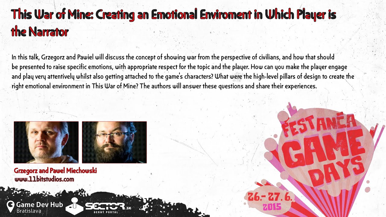 Grzegorz a Pawel Miechowski - This War of Mine: Vytváranie emotívneho prostredia, v ktorom je hráč rozprávačom