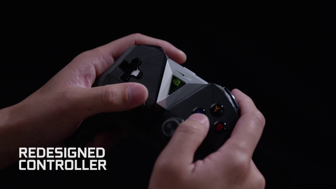 Nakoniec v novej verzii Shield TV bol vylepšený aj gamepad, ktorý už má štandardnejší tvar s dlhšími úchytmi pre pohodlnejšie držanie.