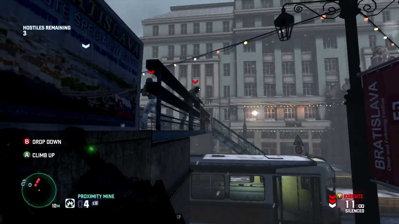 Vedeli ste o tom, že aj známy špión Sam Fisher zavítal do Bratislavy? Bohužiaľ nie do tej skutočnej, keďže si Ubisoft naše hlavné mesto dosť upravil, takže vás ani neprekvapí, že tu nikto v hre nehovorí slovensky. Táto videoherná verzia Bratislavy je dejiskom kooperatívnej/sólo misie mimo hlavnej kampane, kde sa staré SND zmenilo na egyptskú ambasádu, kde sa musíte brániť vlnám nepriateľov. je to naozaj drobná mapa, no taktických možností je tam viac.