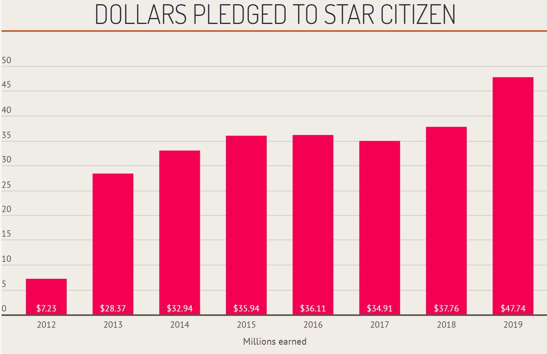 Podľa štatistík sa príjmy Star Citizen hry uplynulý rok zvýšili. Konkrétne ide čisto o príjmy z crowfundingu, v ktorom si hráči kupujú nové lode. a tak prispievajú na vývoj. Toto číslo sa za minulý rok zvýšilo na 47 miliónov, zatiaľ čo predchádzajúce roky sa pohybovali okolo 35 miliónov.