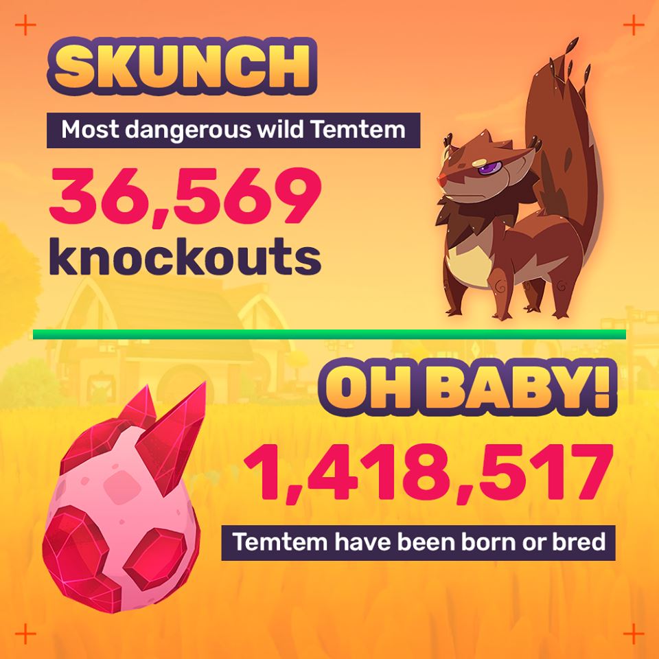 Zároveň hovoria, že sa prvý mesiac sa z vajíčok vyliahlo už takmer 1,5 milióna nových Temtemov a hráči chytili už viac ako 30 tisíc Luma (farebne odlišných) Temtemov. Pri tejto príležitosti autori aj sľúbili v dohľadnej dobe odhaliť presnú roadmapu s plánmi vylepšení hry do budúcnosti.