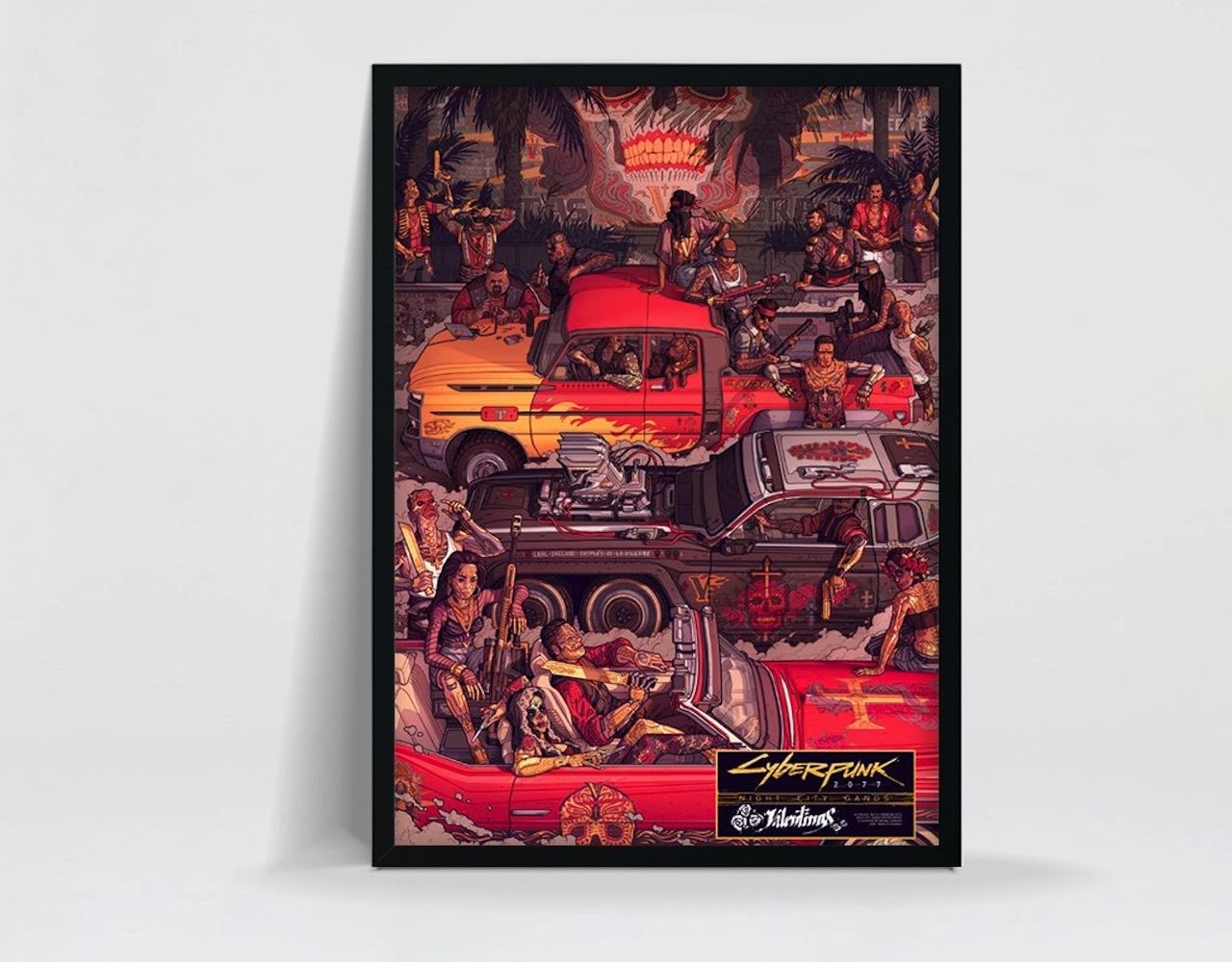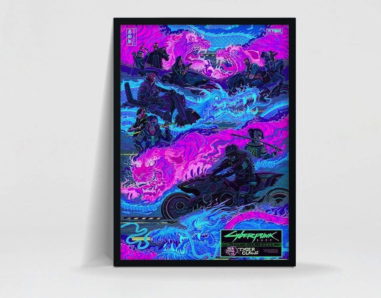 CD Projekt Red predáva tri druhy plagátov k Cyberpunk 2077 obsahujúce gangy v Night City. Plagáty budú v dvoch verziách, kde je rozdiel hlavne v použitom papieri a tým pádom aj v cene, lacnejší je za 27€, drahší za 54,50€.