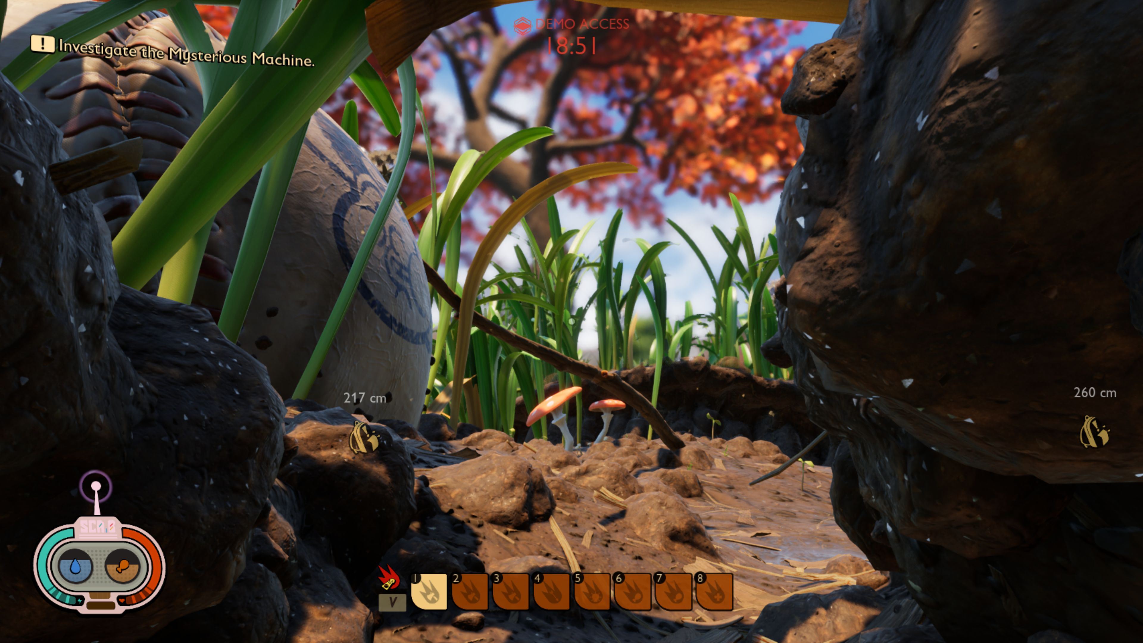 Demo vám ponúkne polhodinu na preskúmanie rozsiahleho prostredia záhrady, ktoré môžete voľne objavovať a zisťovať, čo sa vlastne stalo a aký je tento svet. Ukáže vám hmyz, ktorý tu vládne, veci, ktoré môžete zbierať, prvé craftovacie možnosti a aj prvé časti príbehu. Je to veľmi dobre hrateľné, aj keď je to survivalovka a nevedie vás za ručičku. Zo začiatku vám však naznačuje, čo máte robiť, ale skôr všeobecne a musíte zistiť, čo vlastne pod tým hra myslí. Môže to byť tým, že je to ešte len nedokončená verzia, alebo to takto plánujú.