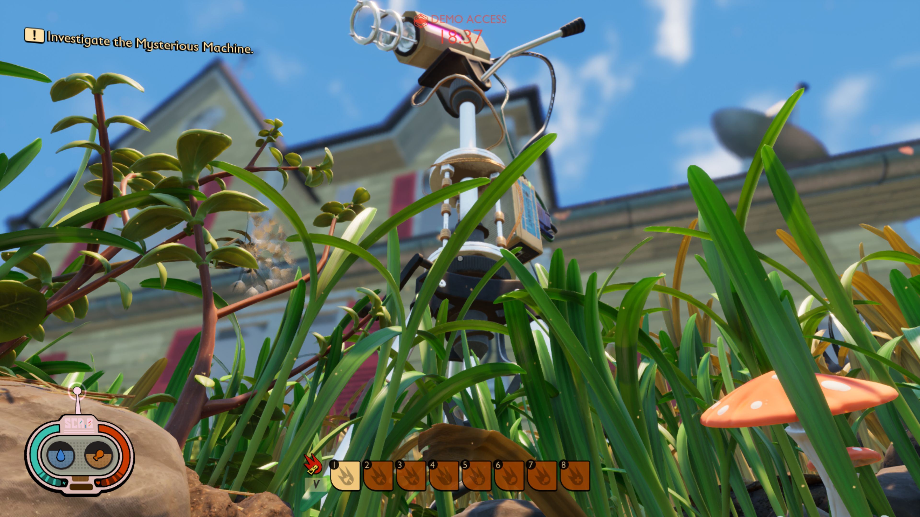 Musíte skúmať zariadenia v okolí až vás dovedú k prvým náznakom toho, čo sa deje, a k robotovi, ktorý vám povie viac. Popritom sa snažíte neútočiť na mravce, lebo bez zbraní je boj proti nim ťažký, vyhýbať sa pavúkom, ktoré útočia aj bez provokácie, ale môžete sledovať aj neškodné lienky, muchy a rôzny ďalší hmyz. Zároveň môžete postupne objavovať aj ďalšie časti záhrady, kde sú zatopené bažiny, alebo temná časť pod stromami, ktorú obývajú pavúky.