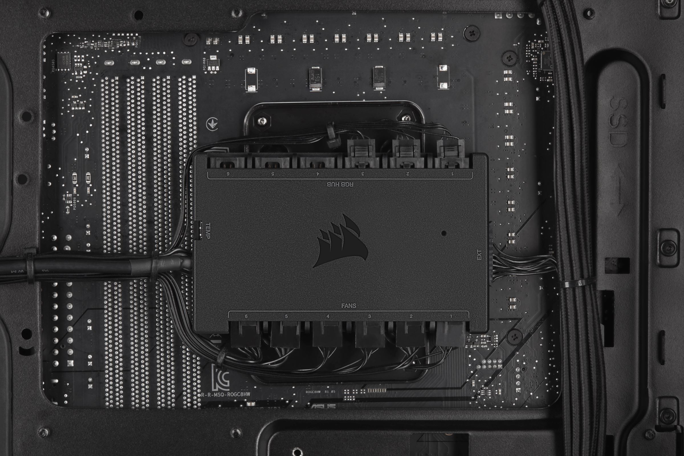 Samozrejmosťou pri Corsair produktoch je plne upraviteľné RGB podsvietenie pomocou iCUE aplikácie, kde je okrem podsvietenia možné aj upravovať rýchlosť točenia ventilátorov a výkon čerpadla chladiča. Podsvietenie zabezpečuje 33 LED svetiel na hlave čerpadla a po osem svetiel na každom ventilátore.