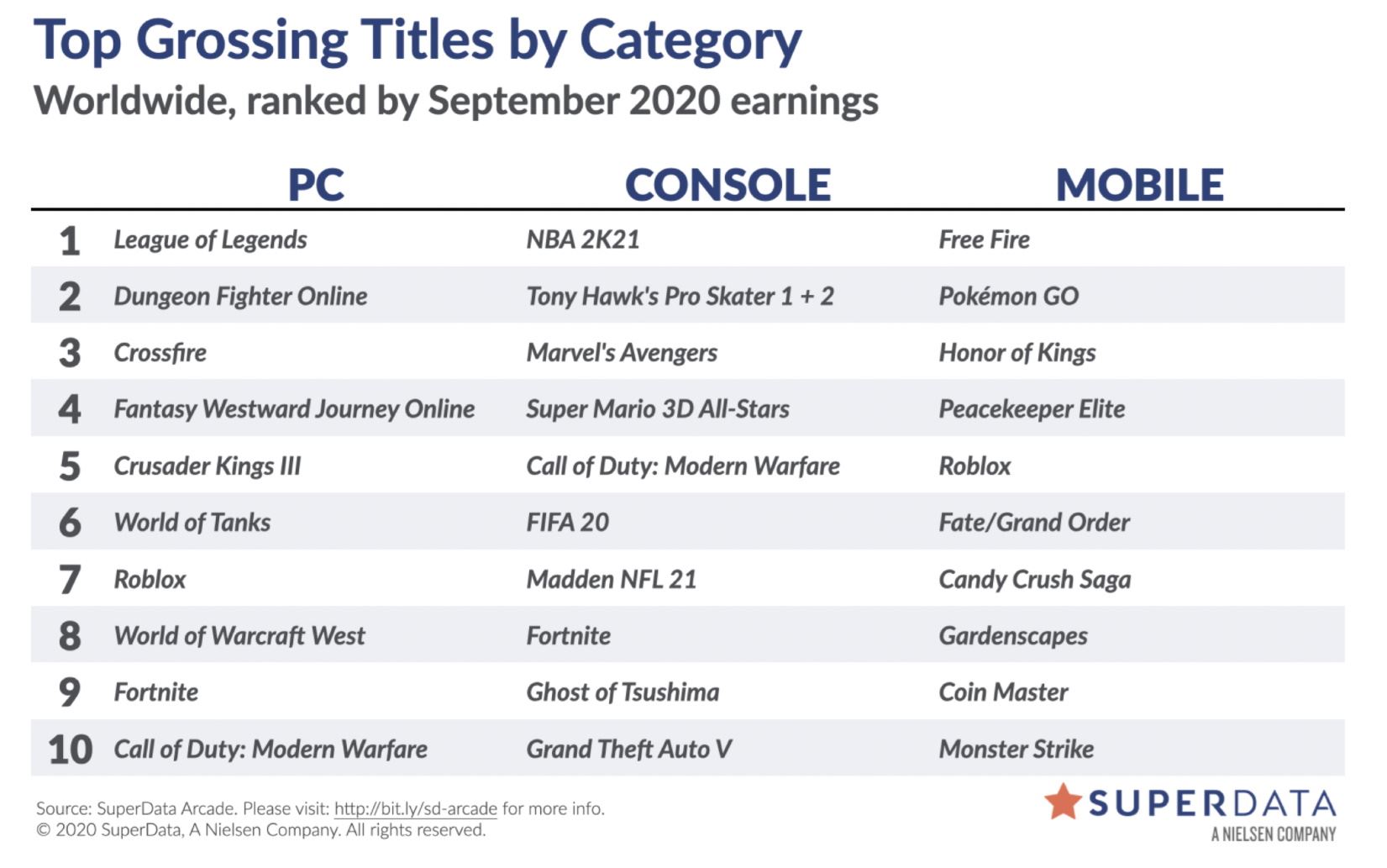 Darilo sa aj Marvel's Avengers, ktoré bolo prijaté veľmi vlažne, najmä vďaka nepodarenej multiplayerovej časti. Ani to však hre nebránilo v tom, aby si na konto k minulému mesiacu pripísala 2,2 milióna predaných digitálnych kópií. V oblasti strategických hier lámal rekordy Crusader Kings III, ktorý na PC predal v septembri 1,1 milióna kópií.