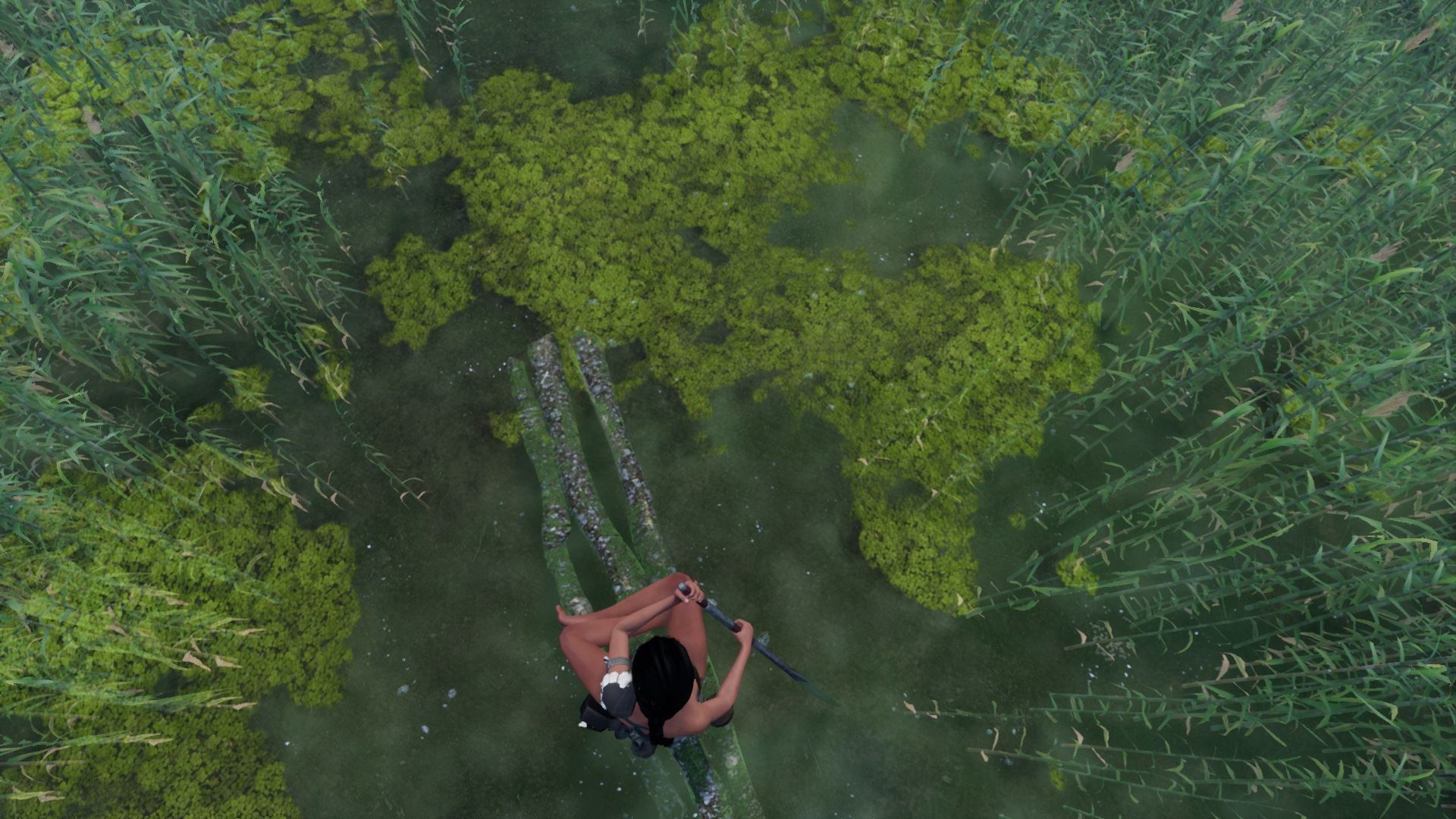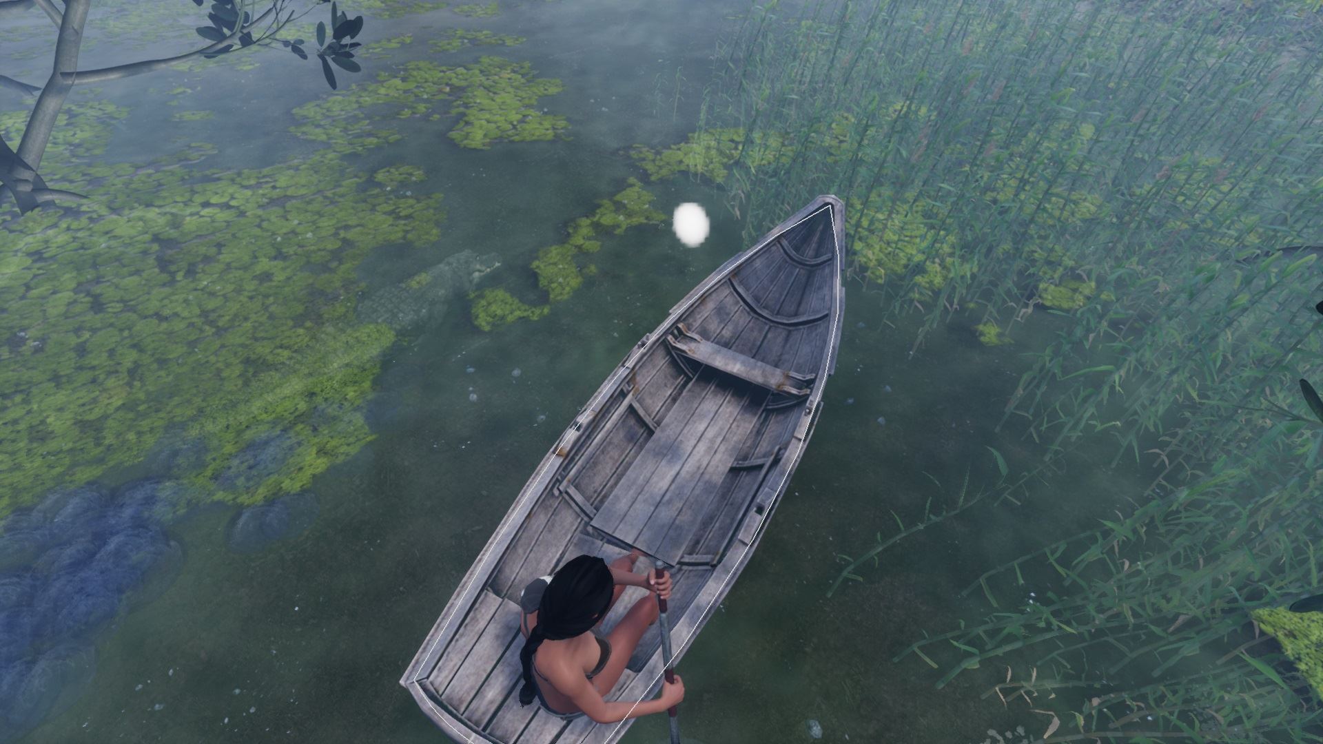 Nakoniec mi však výsledná mechanika člnu zapáčila natoľko, že som sa rozhodol upraviť hneď polovicu prvej mapy - oblasť močiara vyslovene tak, aby išiel čln na ňom využiť. Presun na člne navyše chráni postavu aj pred predátormi, ako sú krokodíly, a hráč ich tak môže obdivovať z bezpečia.