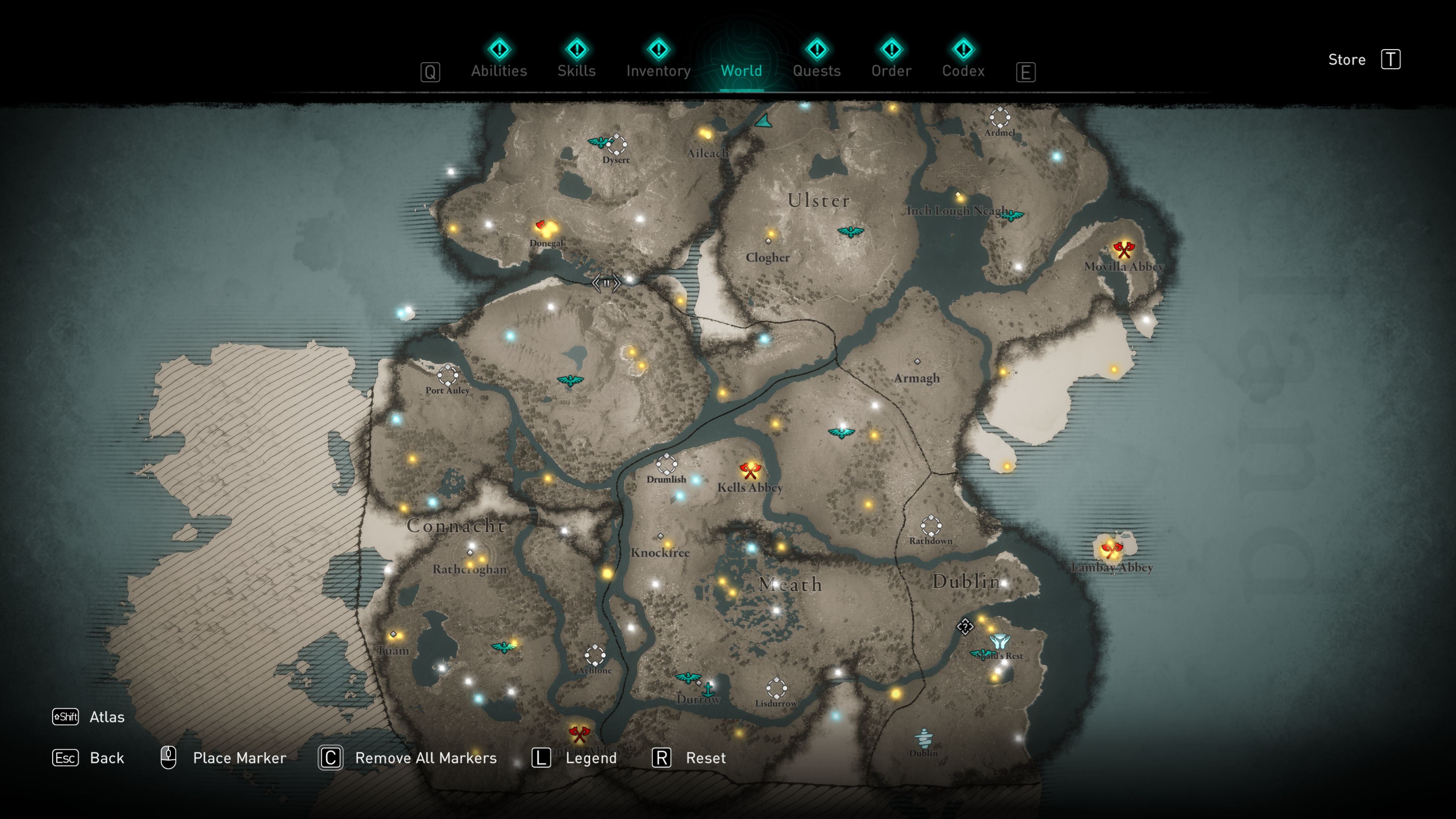 Bližší pohľad na mapu zo synchronizačných bodov. Samotná mapa v hre zaberá strednú a severnú časť Írska.