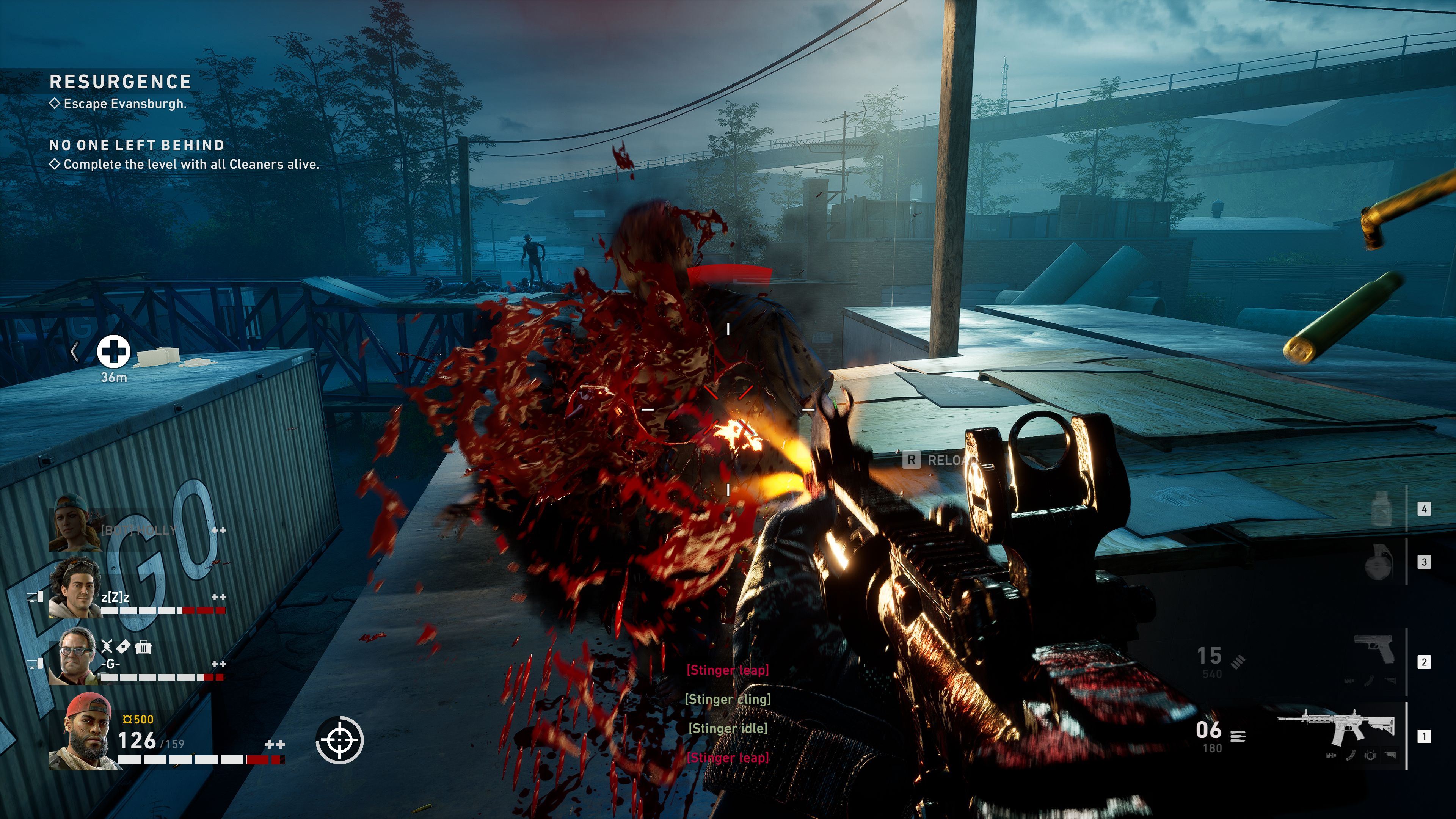 Samotné zbrane sú veľmi dobre zapracované a doslova cítite, že sú rozdielne. Od zvukov, cez stabilitu, silu proti zombíkom. Na vlastnej koži cítiť aj rozdielnu rýchlosť nabíjania, čo je veľmi dôležitá vec v tejto hre. Zároveň je tu kladený dôraz na náboje, ktorých v prostredí nenájdete veľa a ak nájdete, musíte sa k nim dostať skôr ako spolubojovníci. Síce spolubojovníci vám môžu dať svoje, ale radšej sa spoliehajte na seba.