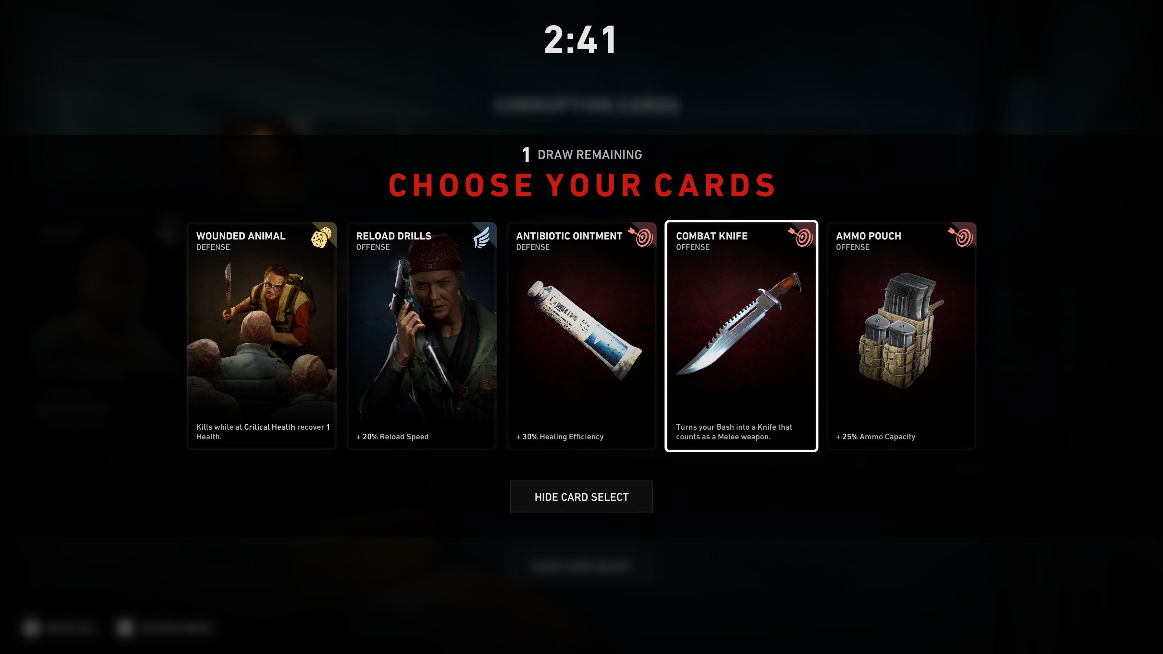 Bonusy pre postavy sú tu základom hĺbky hrateľnosti. Tie navyšujete prostredníctvom kartičiek, ktoré náhodne dostávate a môžete si z nich vybrať a vytvárať si vlastný deck, respektíve viac deckov kariet. Viete si tak vylepšovať rýchlosť nabíjania, odolnosť, ale zároveň sú aj úlohové kartičky, ktoré si tiež vyberiete a ak ich splníte dostávate peniaze. Peniaze rovnako nájdete na bojisku a po konci hry ich môžete použiť na nákup zbraní a vylepšení.