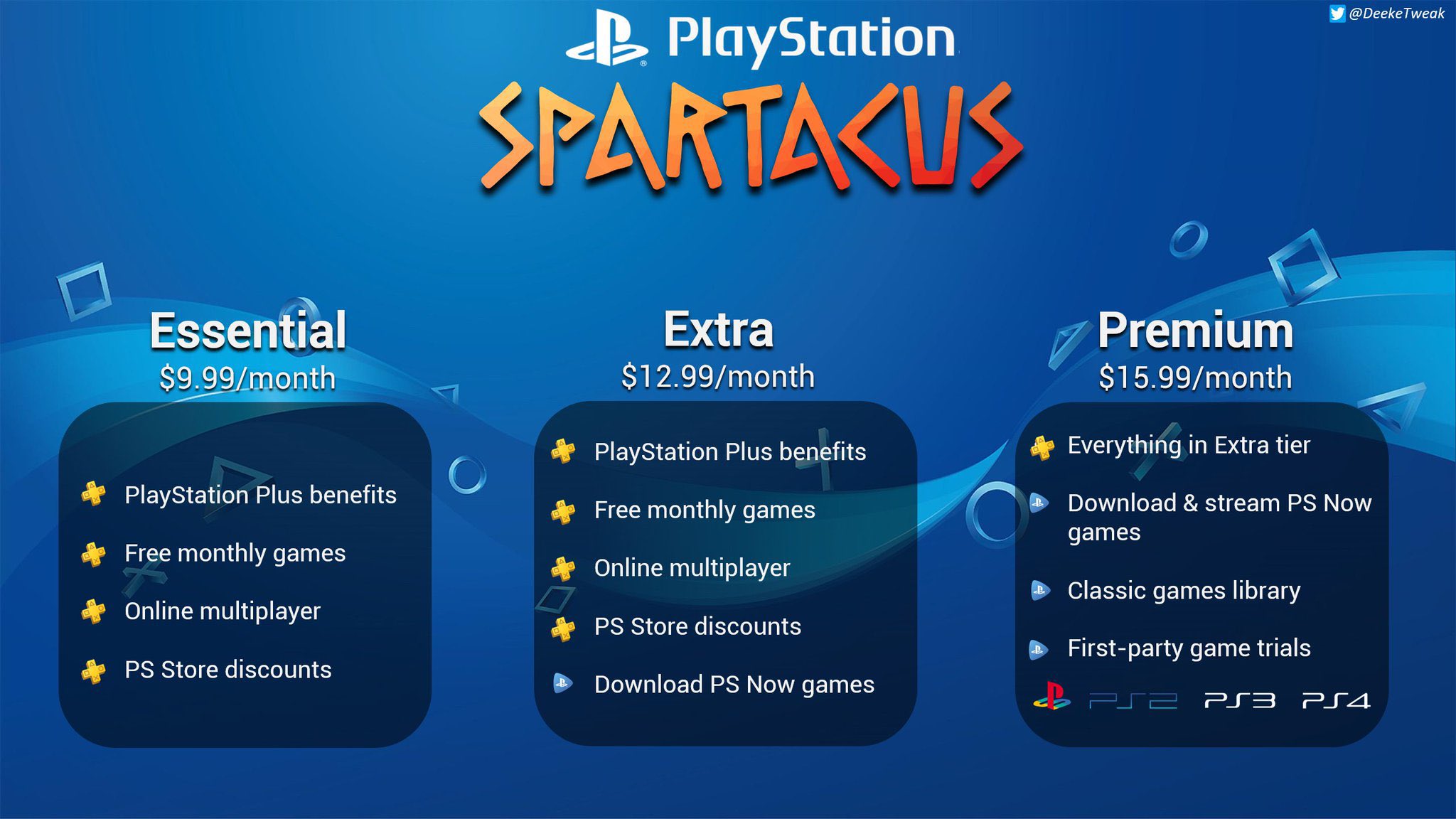 Projekt Spartacus od Sony by mal byť odpoveďou na službu Game Pass od Microsoftu, ktorá umožňuje za mesačný poplatok využívať a hrať veľkú knižnicu hier, vrátane first party titulov. Spartacus by mal byť obdobným projektom, kde chce Sony hlavne spojiť do jednej služby Playstation Plus a streamingovú službu Playstation Now. Podľa informácií by mala mať tri úrovne, spoplatnené za 10, 13 a 16 dolárov za mesiac.