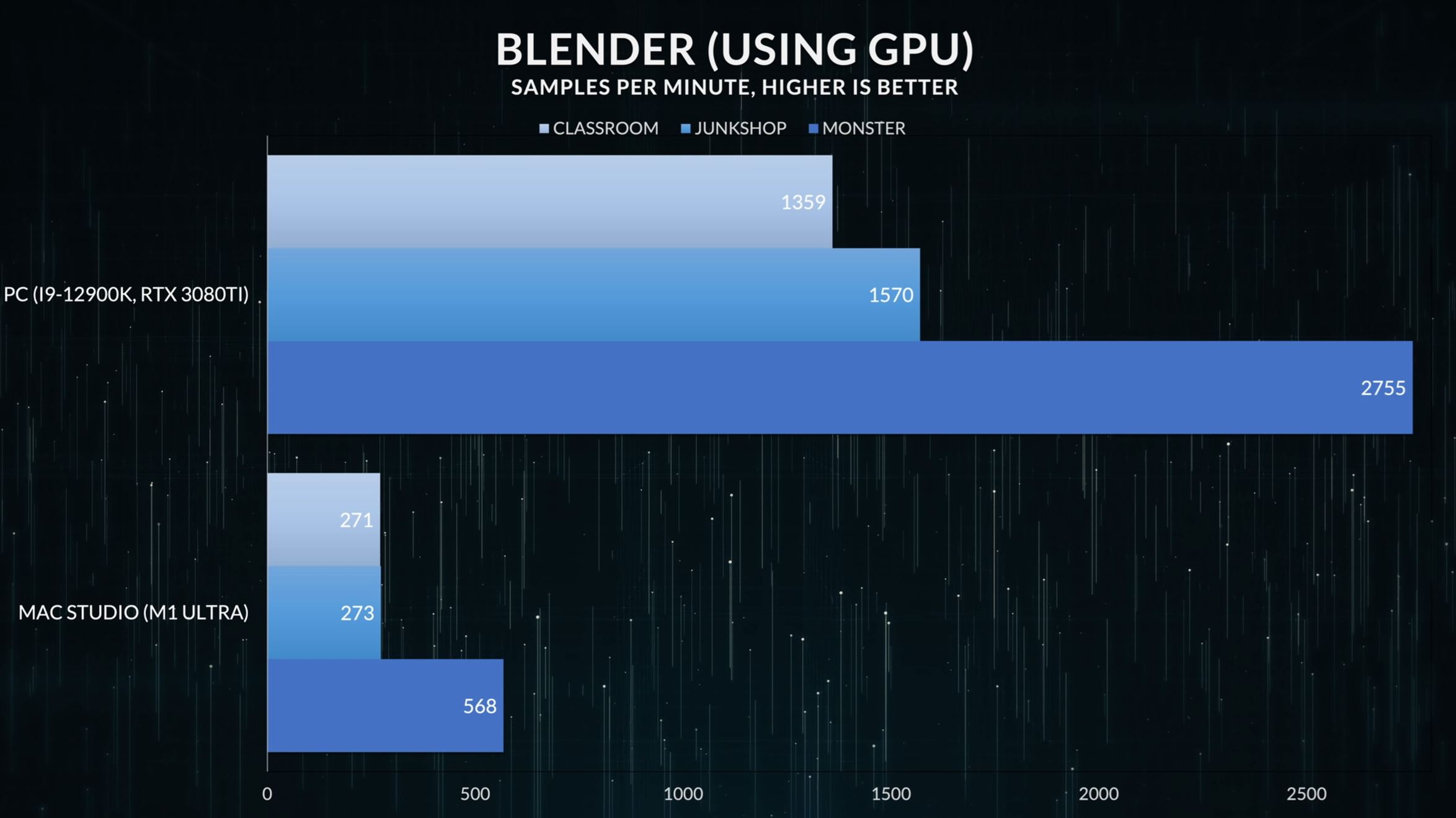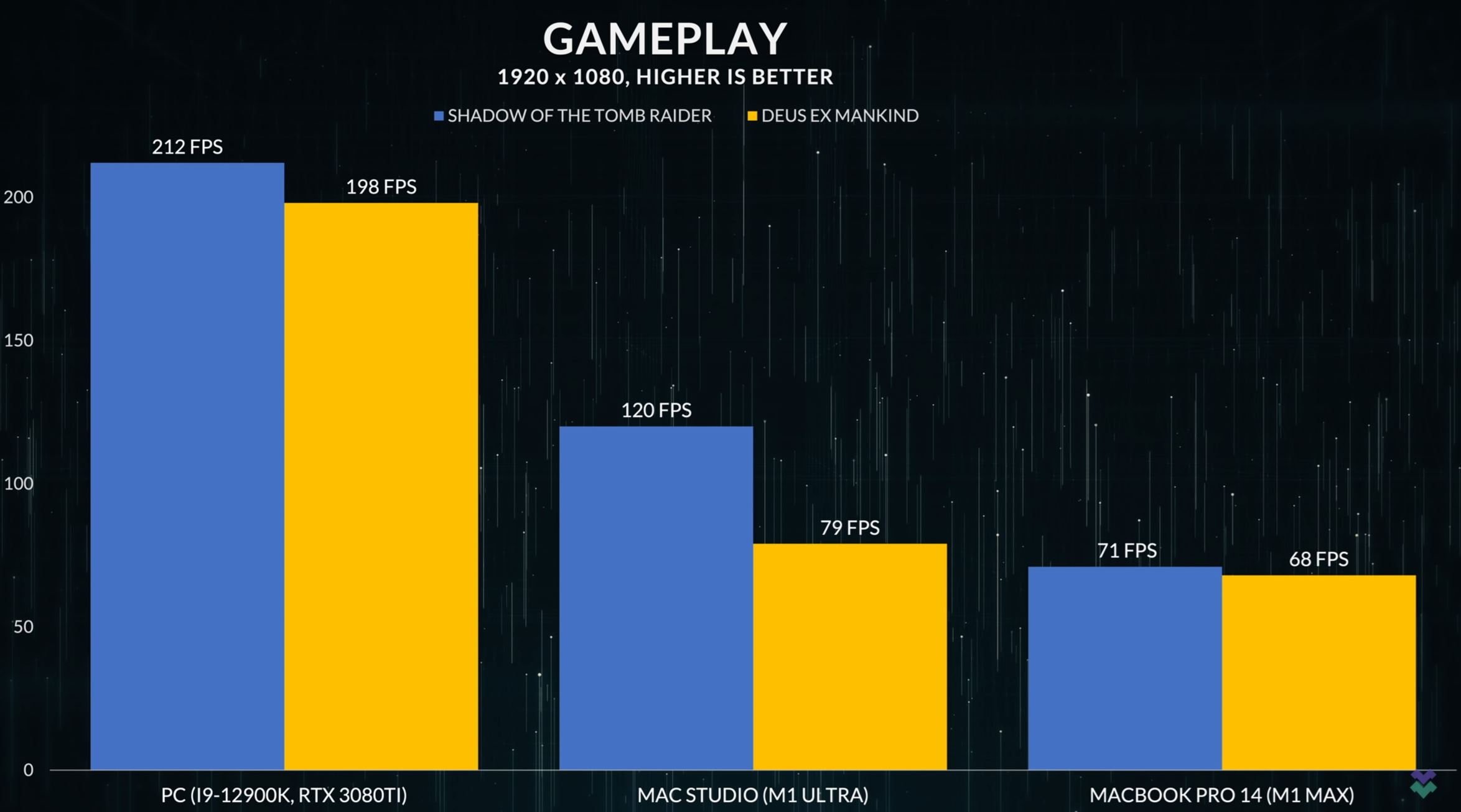 Presnejšie hovorilo, že ich 20-jadrový procesor prekonáva 64 jadrový AMD Ryzen Threadripper 3990X, ale podľa prvých benchmarkov nedosahuje ani výkonu Intel Core i9-12900K a AMD Ryzen 9 5950X. Graficky čip Apple porovnávalo s RTX3090, ale tiež sa naň neťahá.