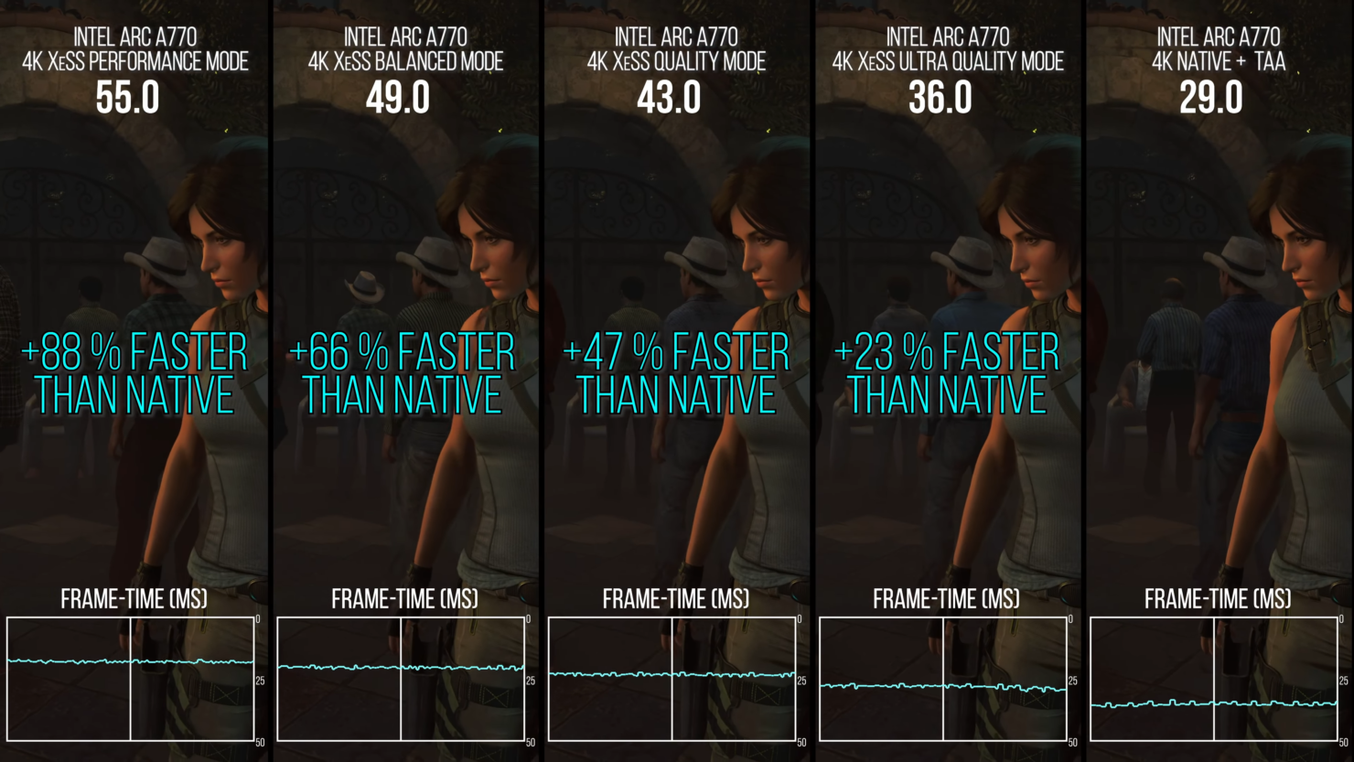 Digital foundry sa už pozrelo na XeSS, Intel alternatívu k DLSS a FSR. V zásade nie je zlý, síce DLSS to nie je, ale kvalita je slušná, aj keď niektoré situácie a pohľady môžu byť dosť zašumené, hlavne pri točení kamery.