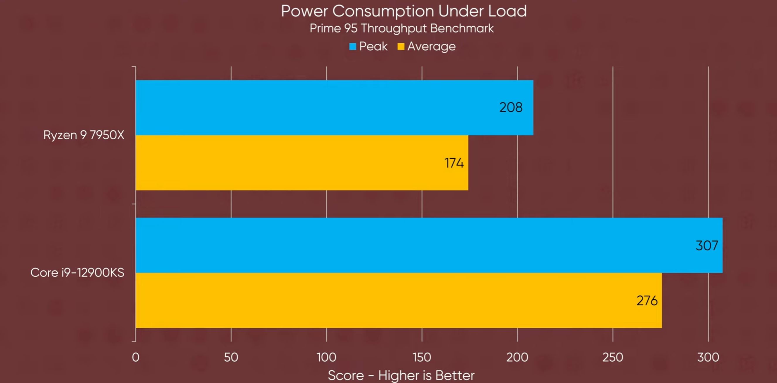 Z výraznejších rozdielov má najvyšší Ryzen 9 7950X o 100W nižšiu spotrebu ako i9 19900KS. Maximálna spotreba je 208W, Intel má 307W. Aj keď lepšie porovnanie je s i9 19900K, kde v benchmarku je intel približne o 5W pod ním. Od Ryzenu 9 však čakajte zahrievanie, teplota procesora rýchlo vyjde na 95 stupňov.