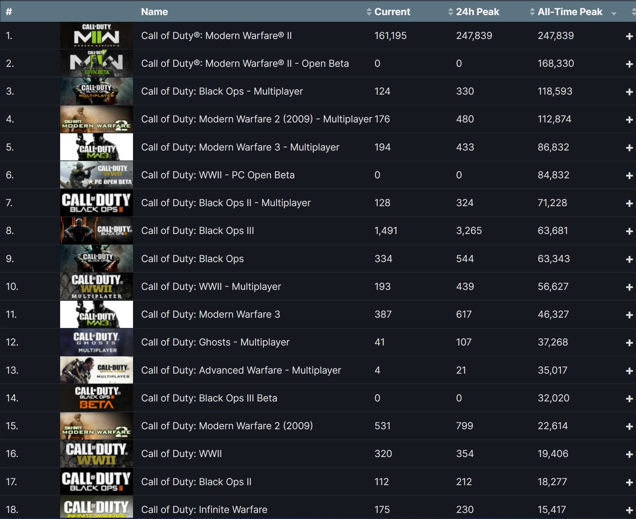 V porovnaní s predchádzajúcimi Call of Duty (ktoré boli na Steame) to vyzeralo nasledovne:
