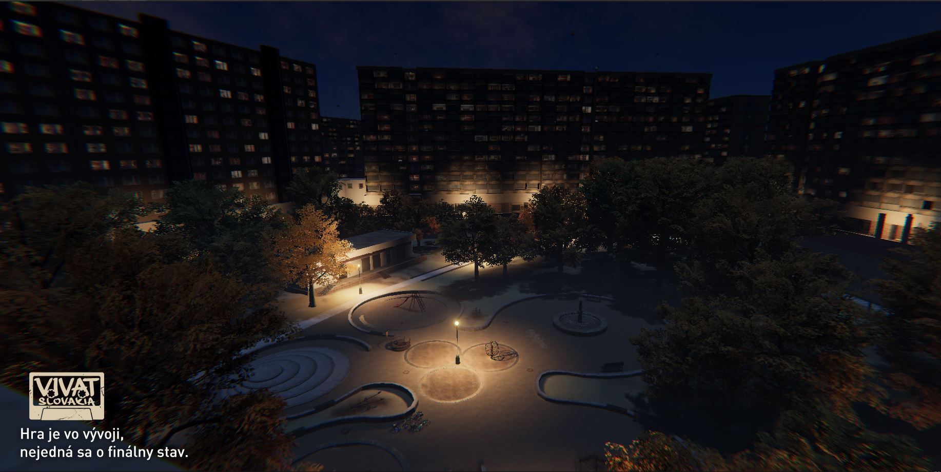 V deme sa dá poprechádzať po časti Petržalky, otestovať dynamické nasvietenie, sledovať interiéry a aj objavovať easter eggy. Celé je to na Unity engine a konkrétne na jeho vyššej HDRP pipeline. Len autori rovno upozorňujú, že vizuál nie je finálny a ešte sa bude zlepšovať. Hlavne animácie a modely postáv vrátane hlavnej postavy Milana.