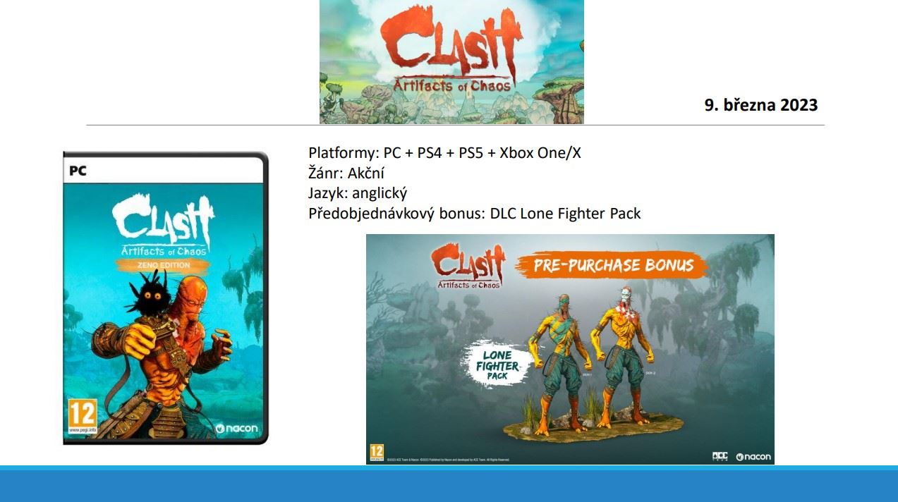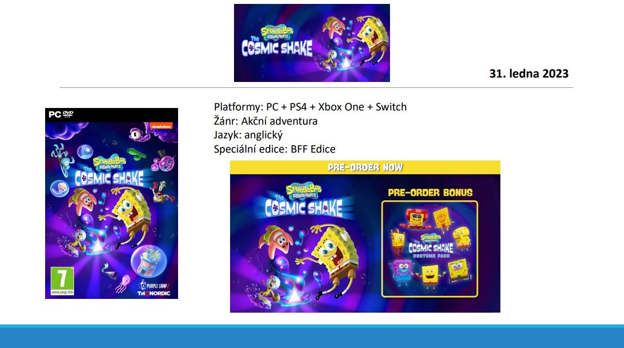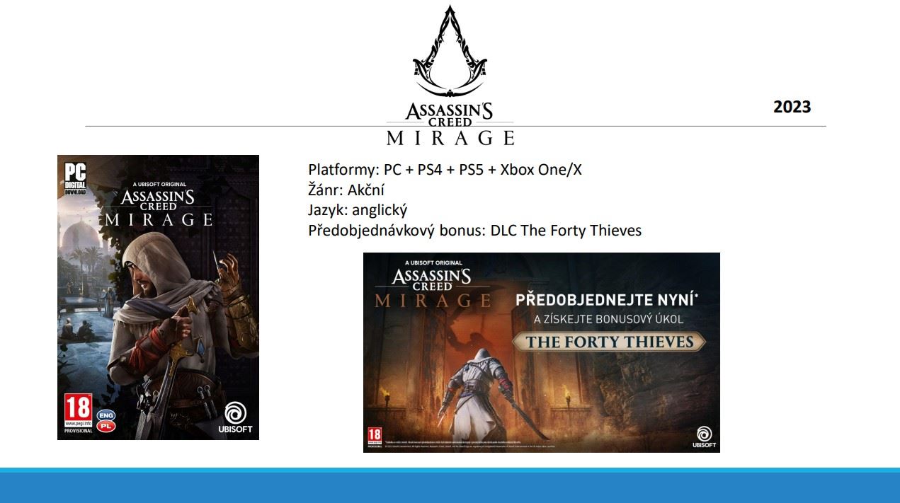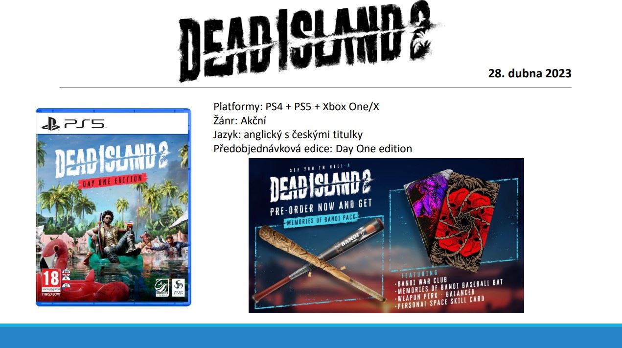 Akoby nás vývojári a vydavatelia hier chceli odmeniť za zvládnutie roku minulého, tento rok len z toho, čo zatiaľ vieme a tušíme, skáčeme radosťou. Diablo IV otriaslo bránami pekla, nový Assassin's Creed Mirage vracajúci sa ku koreňom série sa zakráda von z dielní Ubisoftu, Dead Island 2 sa po dlhých rokoch prebíja do popredia a vyzerá ... ehm čerstvo. Nesmieme ale zabudnúť na Stalker 2, ktorý má u nás veľkú fanúšikovskú základňu, odložené tituly ako Skull and Bones alebo Gollum, rozsiahle rozšírenie Cyberpunk 2077: Phantom Liberty alebo tá plejáda titulov od Focus Entertainment, ako Atomic Heart, Atlas Fallen, Space: Dark Descent. THQ Nordic navyše prinesie nového Spongeboba vo vesmíre, remake temného Gothica a napríklad aj súťažnú arkádu Wreckreation. Čo tento rok prinesie Activision, Plaion, Skybound Interactive, Milestone alebo Giants, zatiaľ nevieme (a to málo čo vieme, povedať nemôžeme) a je dobré si tiež uvedomiť, že v podstate celá druhá polovica tohto roku ešte nebola oznámená. Netreba dodávať, že my sa na tento rok veľmi tešíme a ako vždy urobíme všetko v našich silách, aby sme na trh nepriniesli iba hry, ale všetok servis, čo k nim patrí! Vrátane českých titulkov, darčekov k predobjednávkam, marketingu aj PR.