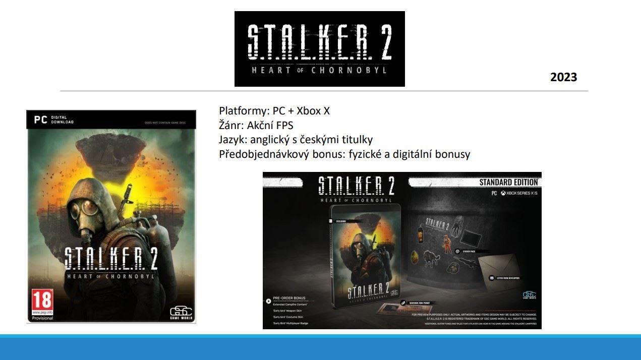 Ako to vyzerá s titulmi na tento rok, vidíte aj s podrobnosťami v prezentácii v prílohe (okrem zobrazených to budú aj Warhammer 40k: Space Marine II, Aliens: Dark Descent, Jagged Alliance 3, Outcast 2, Gothic, Alone in the Dark, Wreckreation, Cyberpunk 2077: Phantom Liberty).