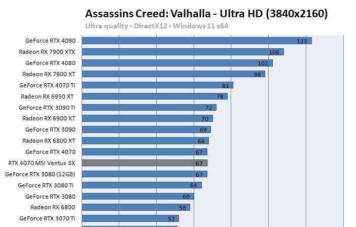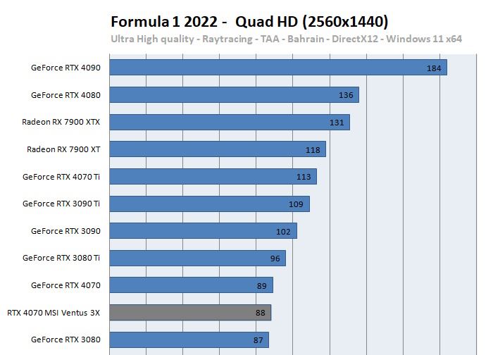 V niektorých hrách je výkon nad RTX 3080, v niektorých pod ňou. Miestami pri 4K stráca viac výkonu ako RTX 3080, ale stále má DLSS3 ktoré to ešte boostne a nakoniec Nvidia ju smeruje na 1440p. Spotreba je pekná a to 180W a teploty pri záťaži len okolo 60-70 stupňov podľa verzie.