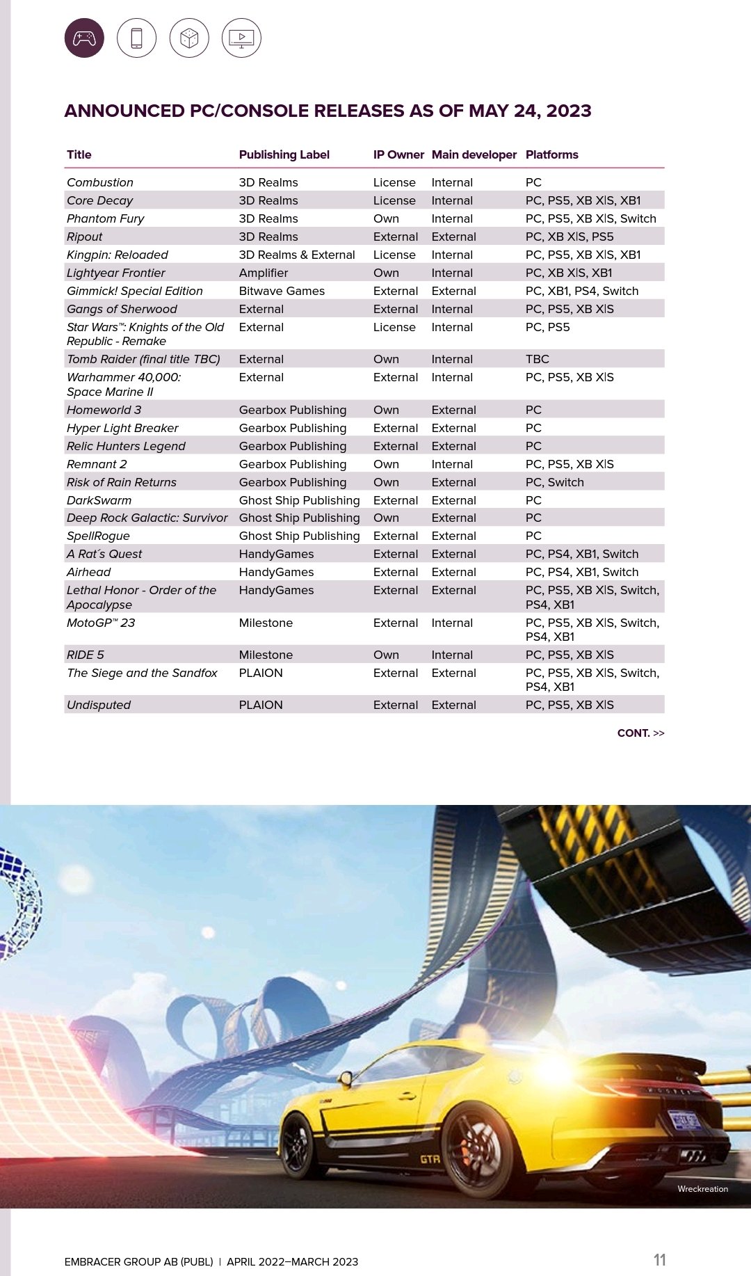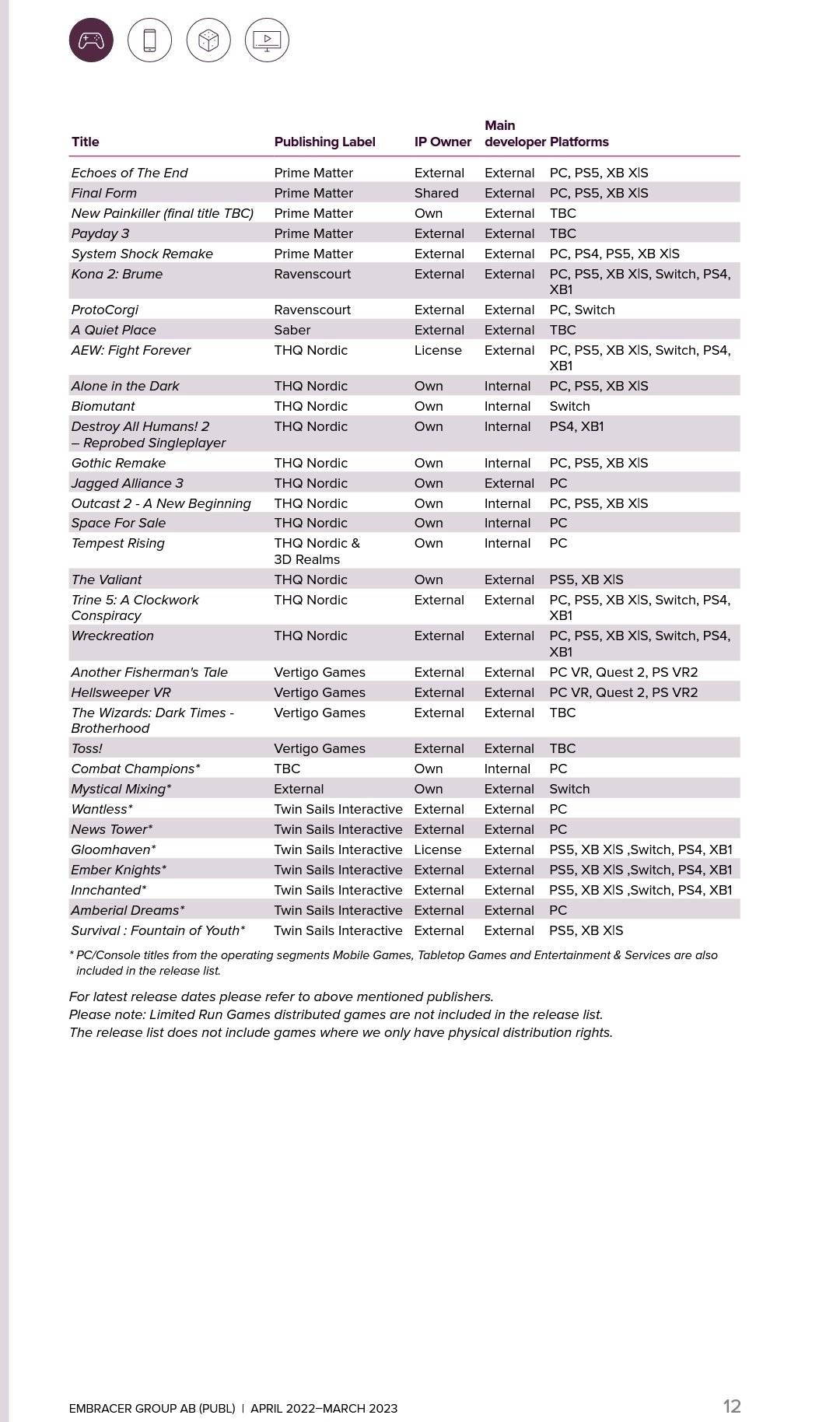 Embracer (pôvodne THQ Nordic) sa postupne pekne nafukuje, stále kupuje nové štúdiá a zároveň aj jeho financie stále rastú. Aktuálne mali za štvrťrok 813 miliónov eur tržieb so 79% nárastom, aj keď do zisku stále nešli, keďže stále investujú. Aj keď teraz je mínus už len 8 miliónov eur namiesto predchádzajúcich 80 miliónov. Celoročne narástli tržby o 121% na 3.2 miliardy eur so ziskom 16 miliónov eur.