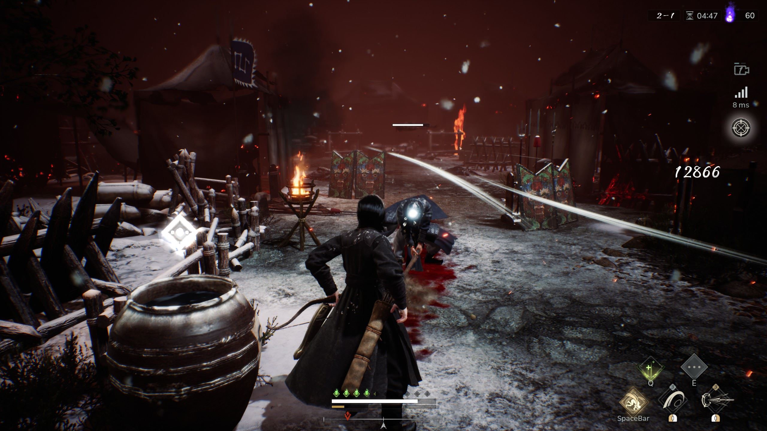 Samotný boj je pritom jednoduchý - používate klávesy na pohyb a myš na vyvolávanie útokov, pri opakovanom klikaní vznikajú kombá. Popritom môžete urobiť úhybný manéver s kotrmelcom. Prípadne sa doliečite alebo napijete vody zo sudov, ktoré slúžia na podporu vášho života a energie. Útoky sa prakticky neustále opakujú a variabilita nie je veľmi veľká. Najzaujímavejšie sú špeciálne pohyby vo chvíli, keď pri nepriateľovi zasvieti ikona, ktorá vám naznačí, žena neho môžete použiť unikátny manéver.
