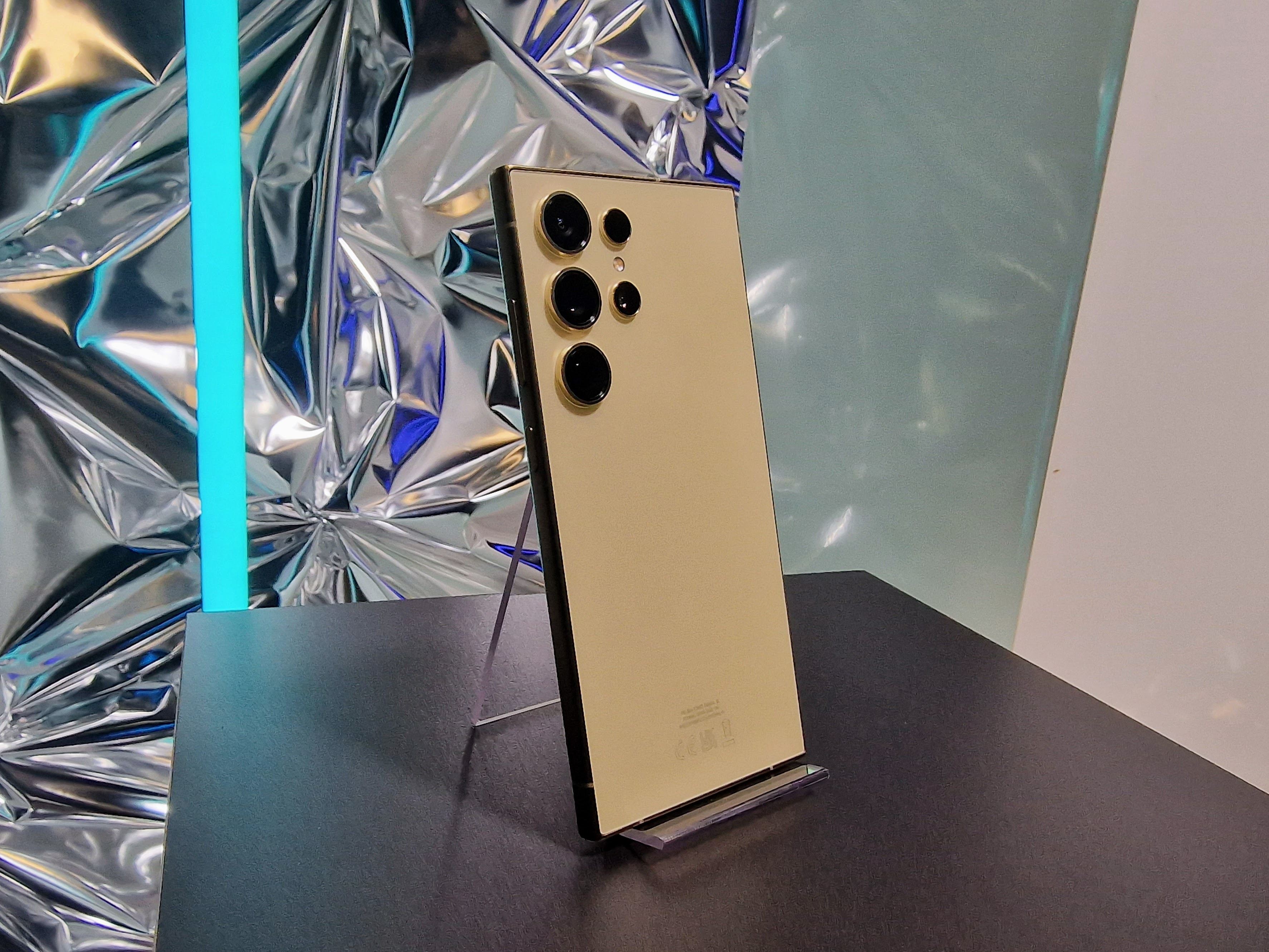 Funkciami najviac nabitý model je ale už tradične S24 Ultra, ktorý okrem klasického stylusu prináša aj všetky AI funkcie. Ako už býva zvykom, fotoaparát a displej sú opäť lepšie než minulú generáciu, novinkou je plochý displej a opäť menšie zaoblenie na hranách rámu zariadenia, ktoré sú teraz vyhotovené z titánu. Zadná strana pozostáva z matného skla a šošoviek fotoaparátu usporiadaných rovnako ako v predchádzajúcich generáciách. Zmenila sa aj farebná paleta predstavených modelov, pričom nesmie chýbať tradičná čierna v prevedení čierny titán, sivý titán, fialový titán a žltý titán. Rovnako ako pri menších modeloch viete získať exkluzívne farebné prevedenia priamo v obchode Samsungu a to konkrétne zelenú Titanium green, oranžovú Titanium orange a modrú Titanium blue farbu. Exkluzívna pre Samsung obchody je taktiež aj 1TB verzia zariadenia.