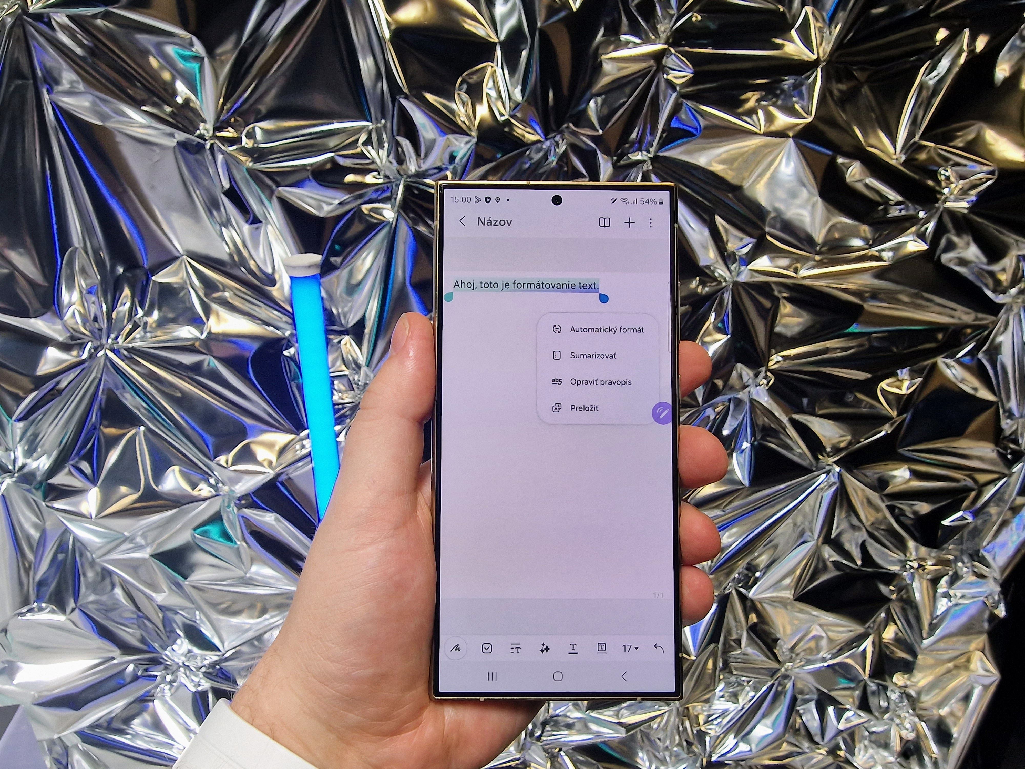 To, čo bolo ale hlavným ťahákom, bolo predvedenie Galaxy AI funkcií priamo v praxi. Vyskúšali sme si preklad telefonátu v reálnom čase, kde ale treba počítať s obmedzením len na veľké svetové jazyky. Funguje to ale výborne a poteší aj podpora mimo Galaxy zariadenia, teda môžete volať a prekladať komukoľvek. Úprava gramatiky a štylistiky ale už funguje aj pre slovenčinu a určite bude jednou z najpoužívanejších AI funkcií z celého Galaxy AI balíka. Funguje rýchlo a ponúkne vám hneď niekoľko foriem štylistiky. Príkladom efektívneho využitia AI je zároveň možnosť požiadať AI o vytvorenie zhrnutia z obsiahleho textu, a je jedno, či ide o dokument, webovú stránku, poznámky alebo email. Rovnako viete upraviť a zmeniť štruktúru a členenie dokumentu pomocou AI.