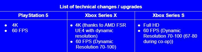 Prichádzajúce next-gen vylepšenia sú zhrnuté v prehľadnej tabuľke: