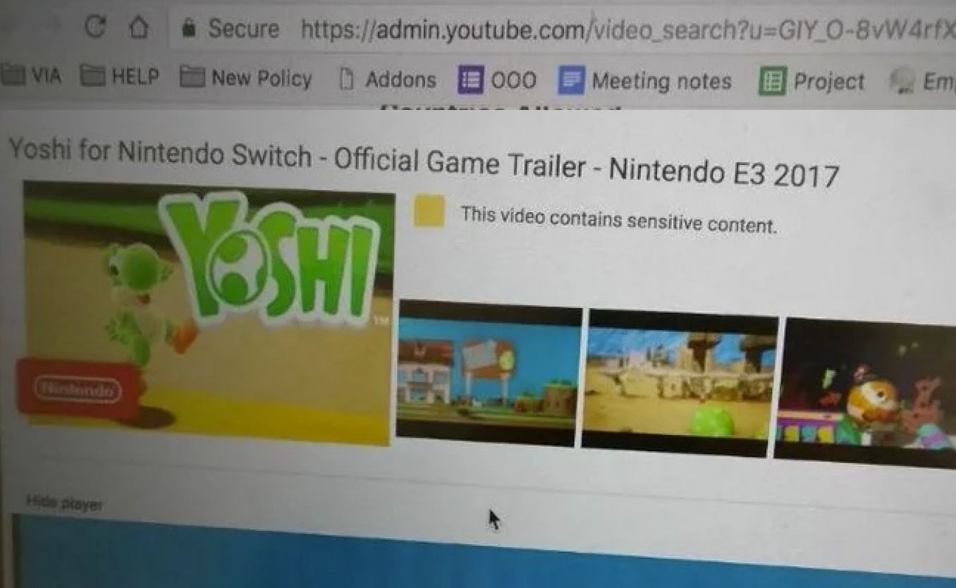 V záznamoch majú aj prípad leaku videa Nintenda Yoshi's Crafted World a to tesne pred E3 prezentáciou, kde rovno zamestnanec ukázal na fotke aj admin.youtube.com linku.