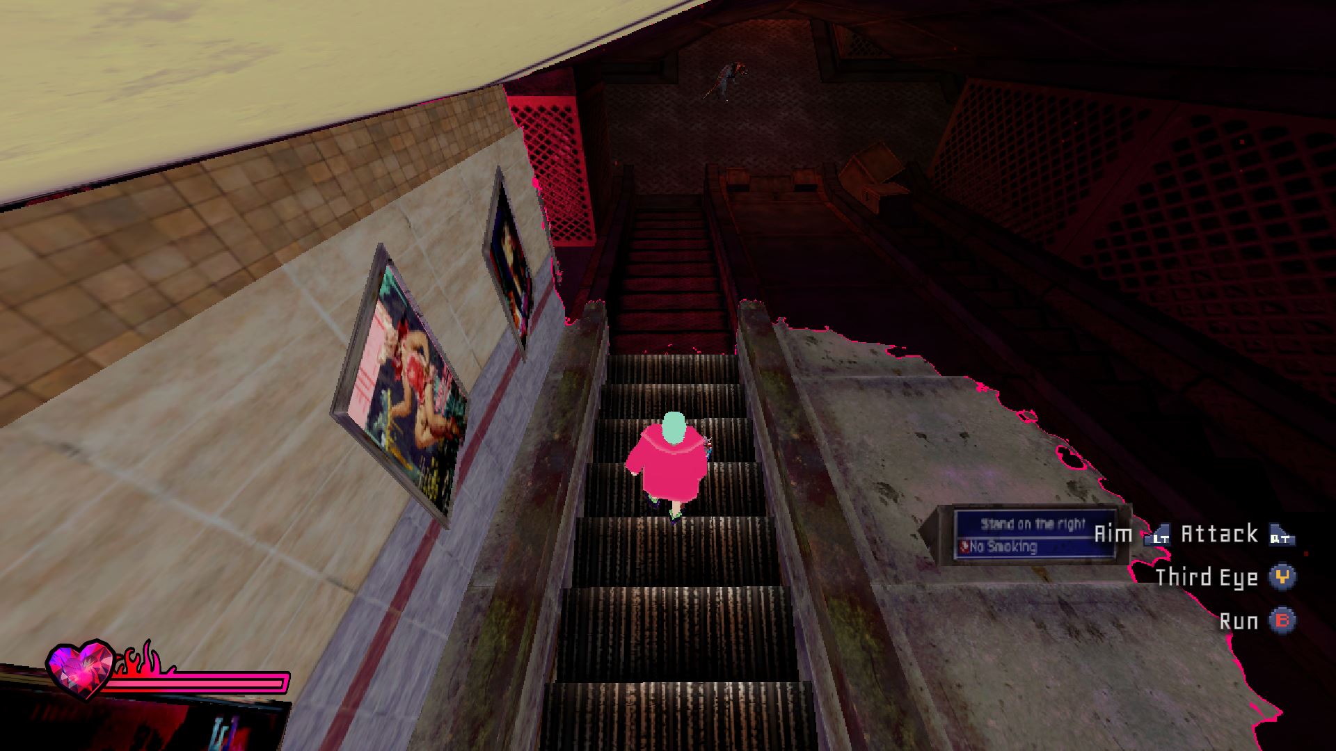 Tretie oko vám, ako som už spomínal, umožňuje vidieť stanicu aj v minulosti, kedy nebola ešte taká zhrdzavená, plná bodcov a barikád a pravdepodobne ani plná démonov. Myslím si, že s touto dvojakosťou každej lokácie sa hra ešte vyhrá. A ku koncu dema zistíte, že to hra bude aplikovať aj na niektoré postavy.
