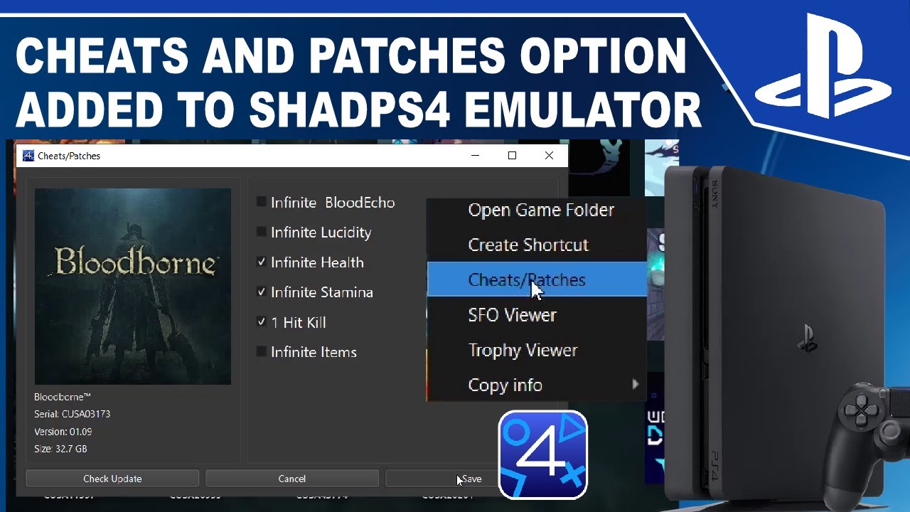 Pre zaujímavosť, ShadPS4 už pridal k hrám možnosti aj cheatov a patchov.