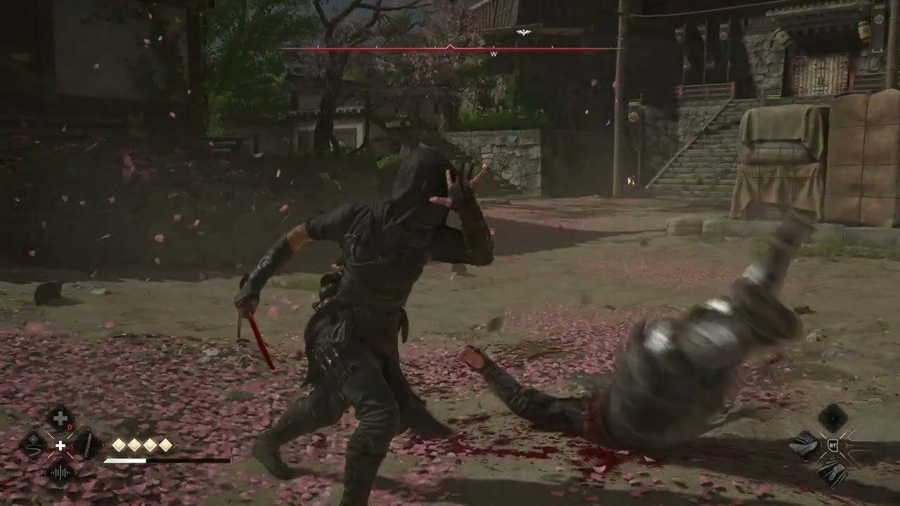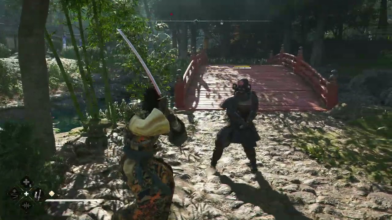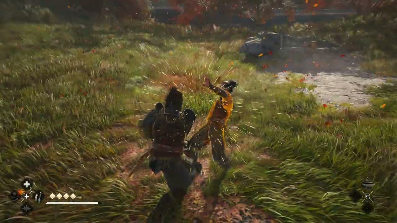 - Parry / odklonenie: Yasuke parruje priamo, nepriateľ ustupuje. Naoe odkloní útok bokom, čím vystaví nepriateľa útoku, no otvára sa ostatným.